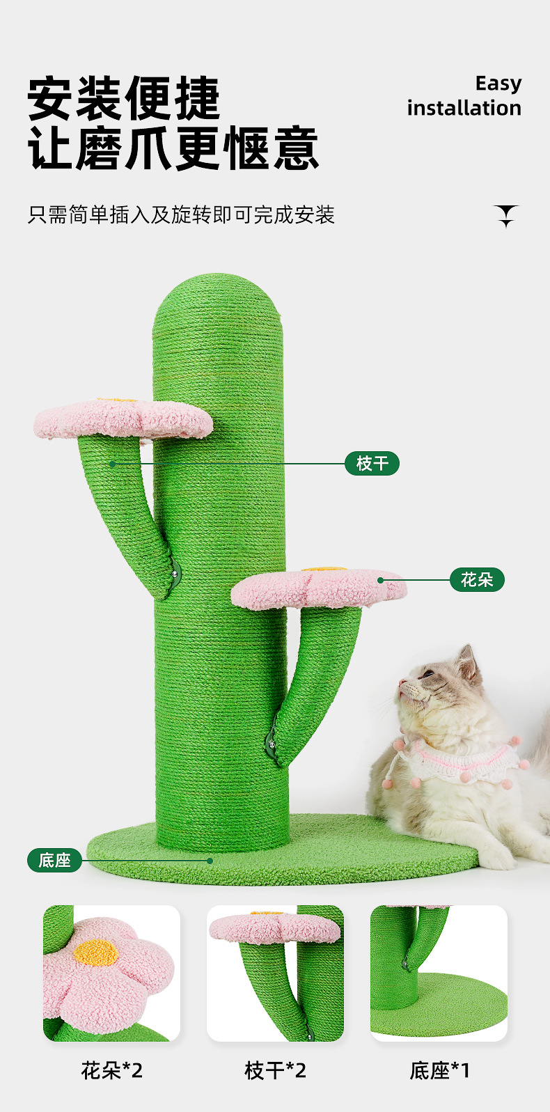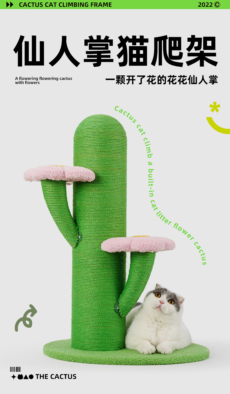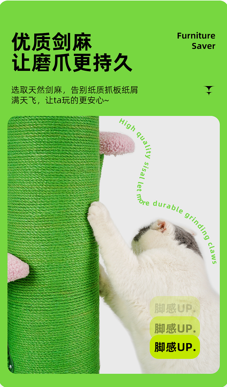 Miaoxianer 선인장 고양이 클라이밍 프레임 고양이 트리 사이잘 클라이밍 프레임 수직 대형 고양이 스크래치 컬럼 고양이 스크래치 보드 고양이 점프 플랫폼 장난감