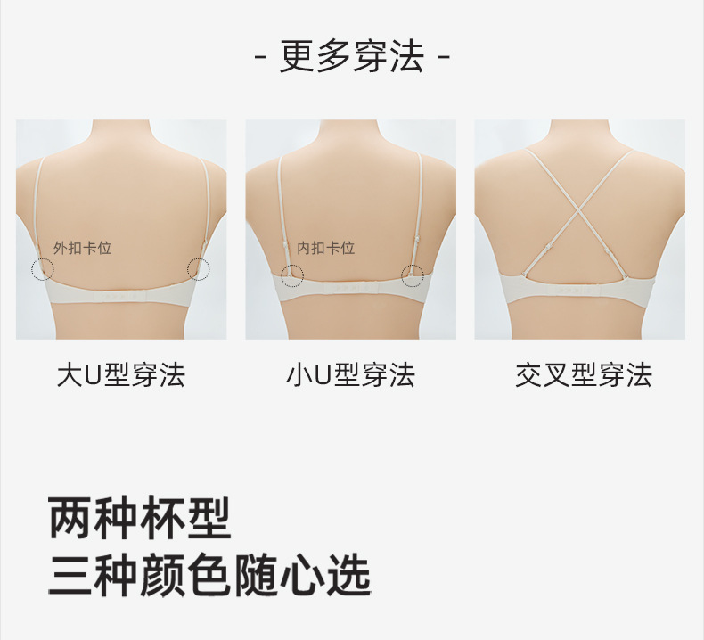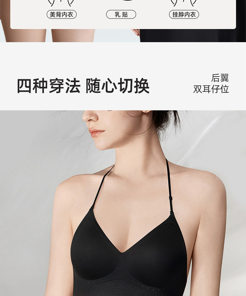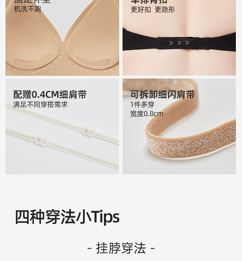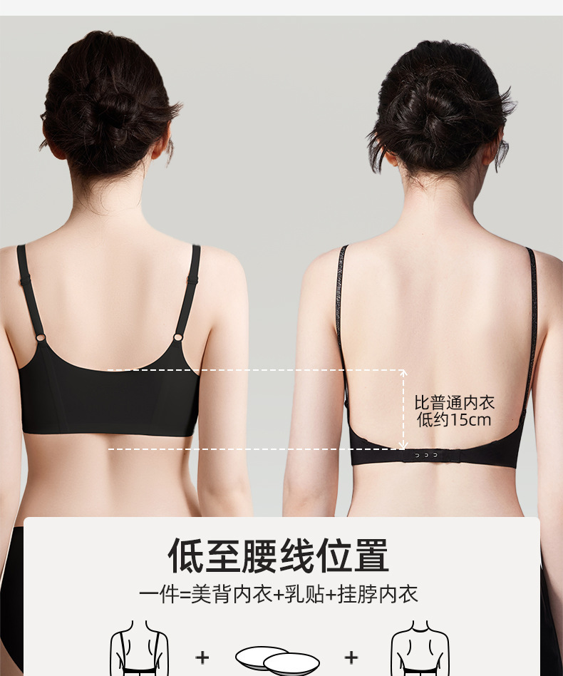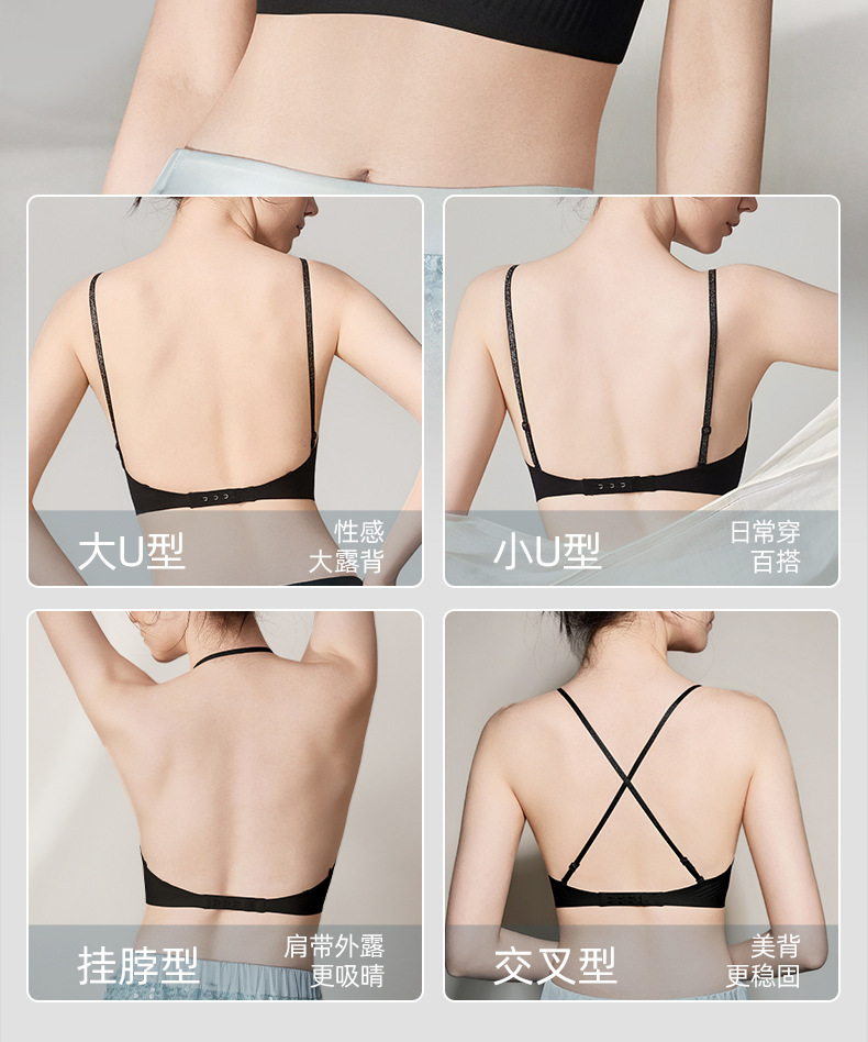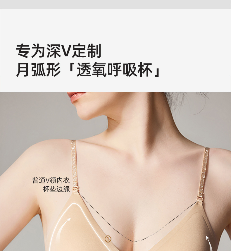 幸棉同款无痕深V挂脖美背内衣粉底液大U背亮闪肩带聚拢细肩带文胸