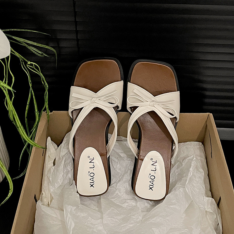 여성용 인터넷 연예인 인기 복고풍 흰색 슬리퍼, 2025년 신상 여름 스커트와 두꺼운 밑창 샌들스토어 가기