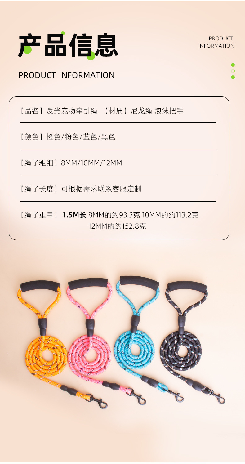 개 산책용 반사견줄, 훈련견 p줄, 애완용품, 나일론 내마모성, 깨지기 쉽지 않은 개줄, 방폭형스토어 가기