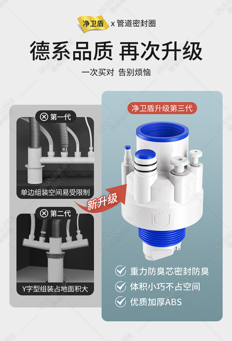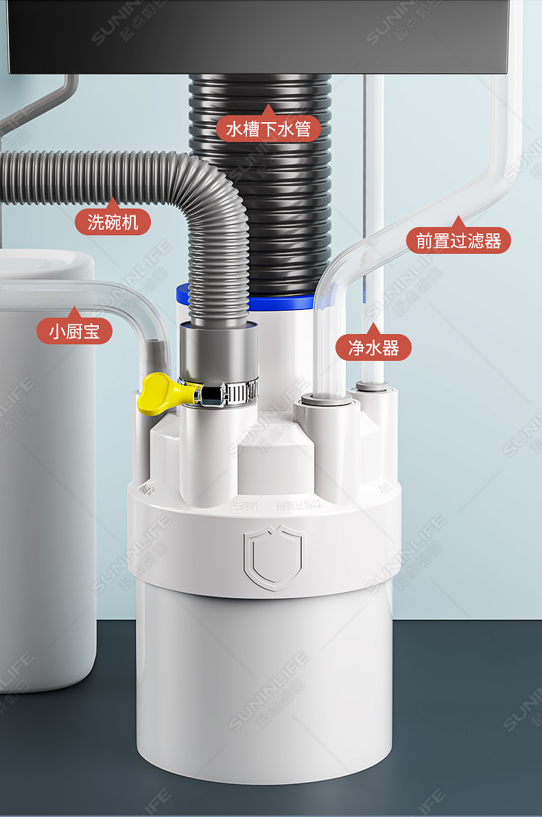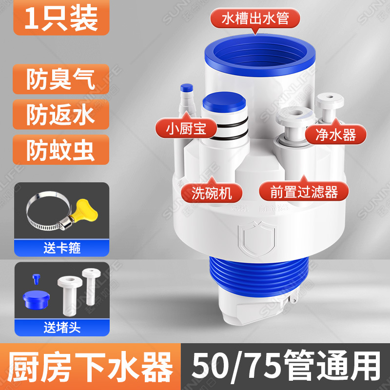 주방 하수구 3구 식기세척기 싱크대 배수구 정수기 밀봉마개 분수 방수 및 냄새 방지 유물스토어 가기