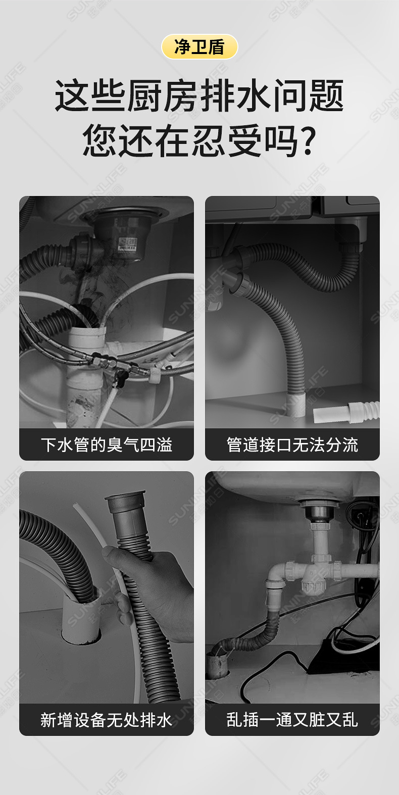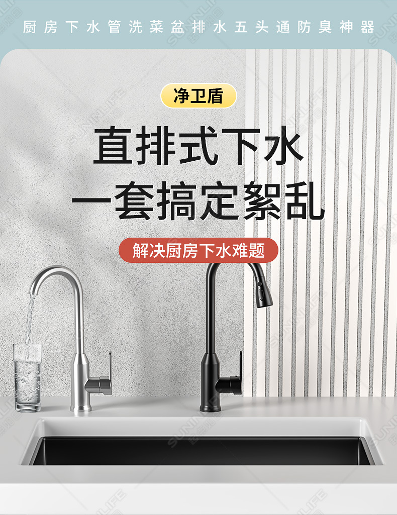 주방 하수구 3구 식기세척기 싱크대 배수구 정수기 밀봉마개 분수 방수 및 냄새 방지 유물