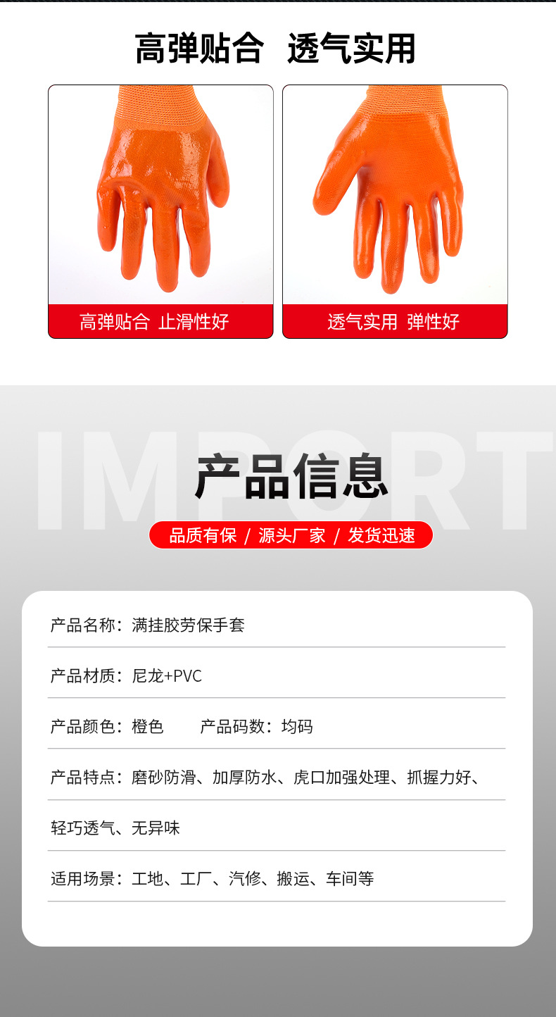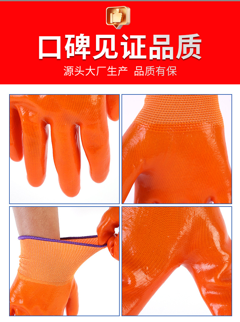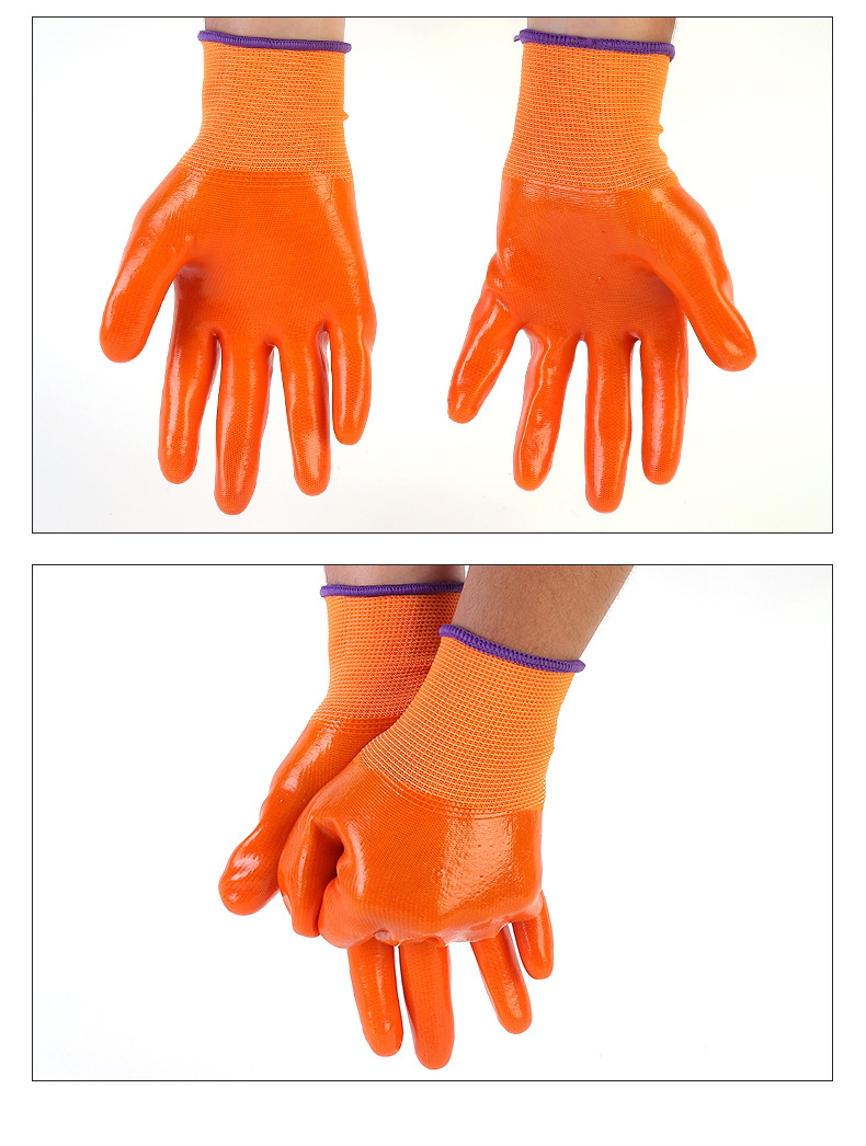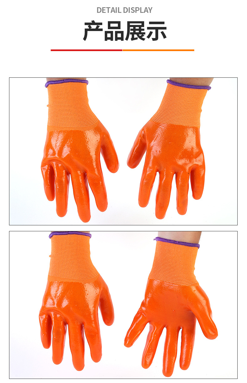 도매 풀코팅 PVC 함침 작업용 장갑 오렌지색 내유성 무광 미끄럼 방지 장갑 산업용 안전 장갑스토어 가기
