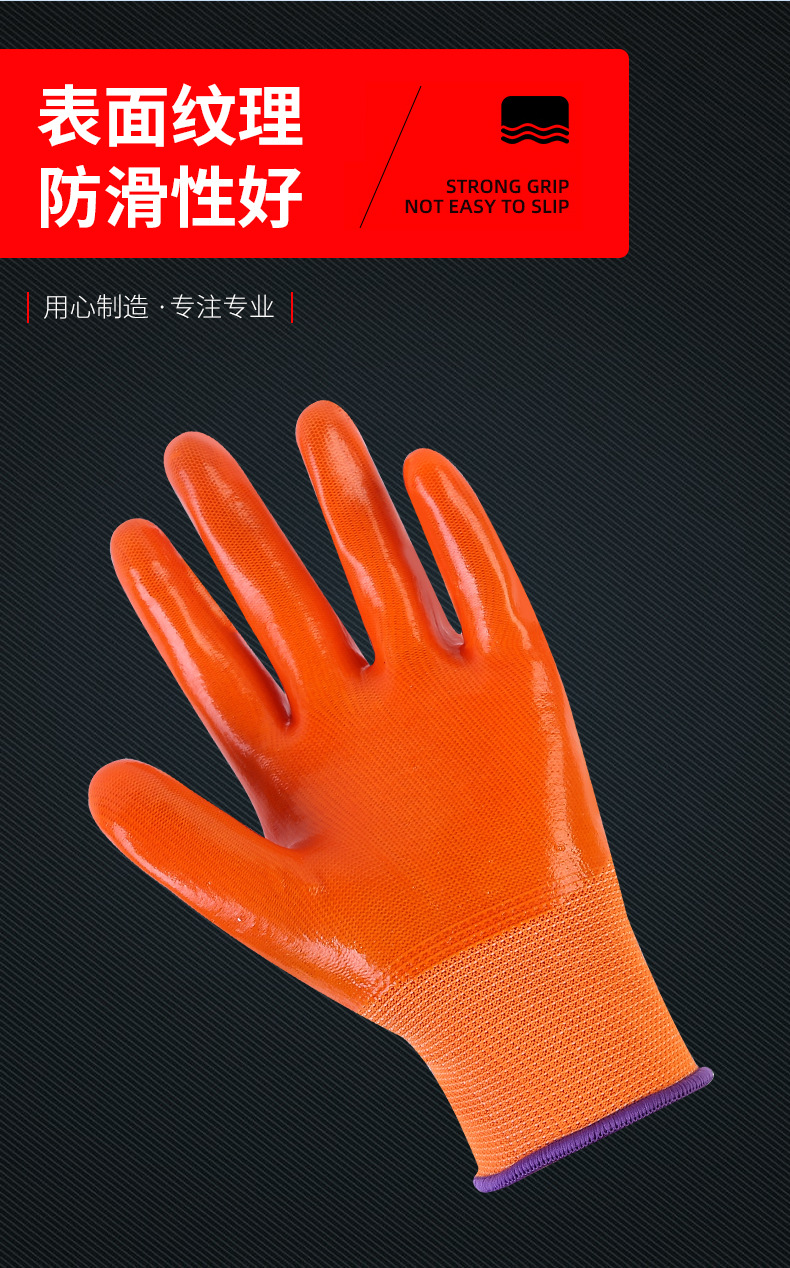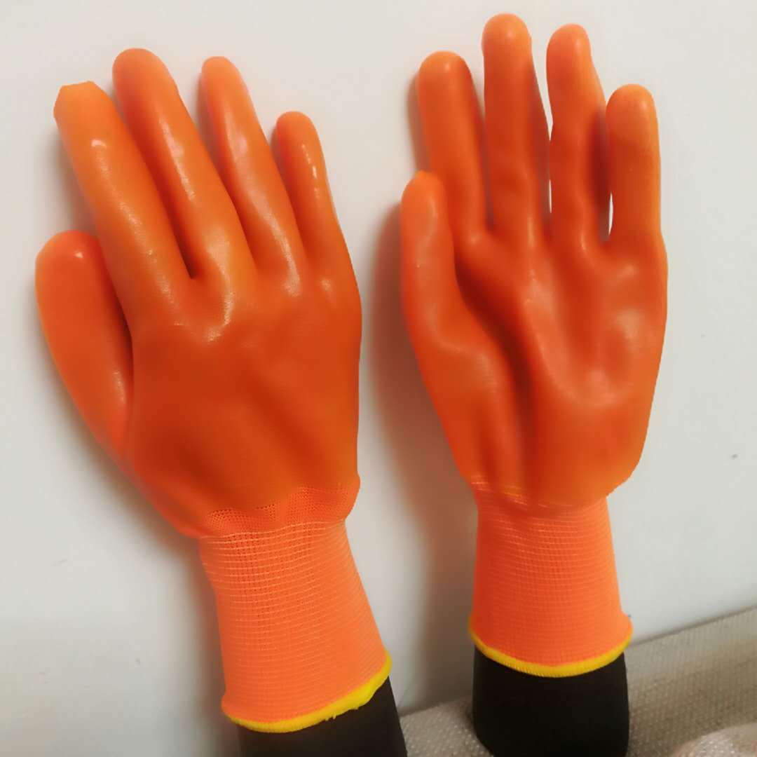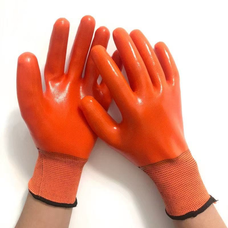 도매 풀코팅 PVC 함침 작업용 장갑 오렌지색 내유성 무광 미끄럼 방지 장갑 산업용 안전 장갑