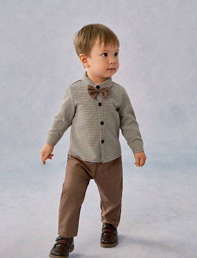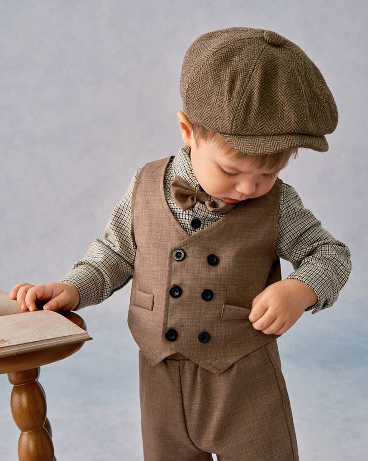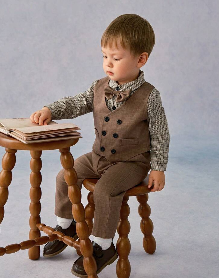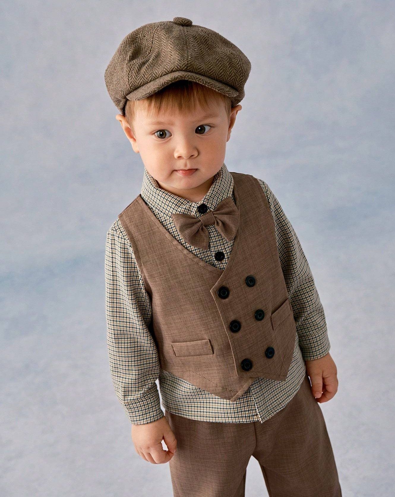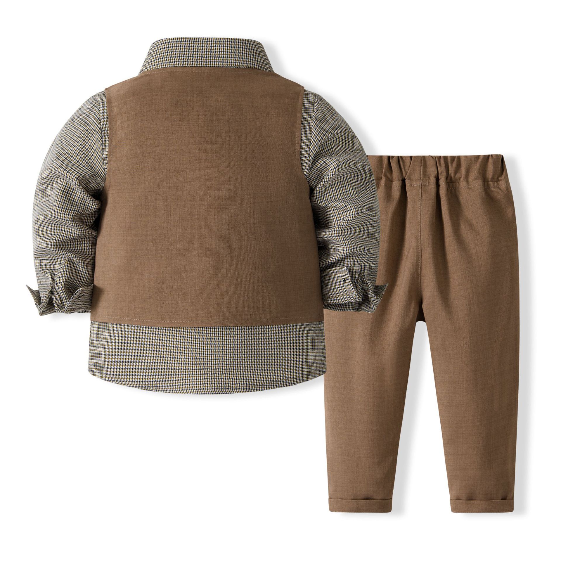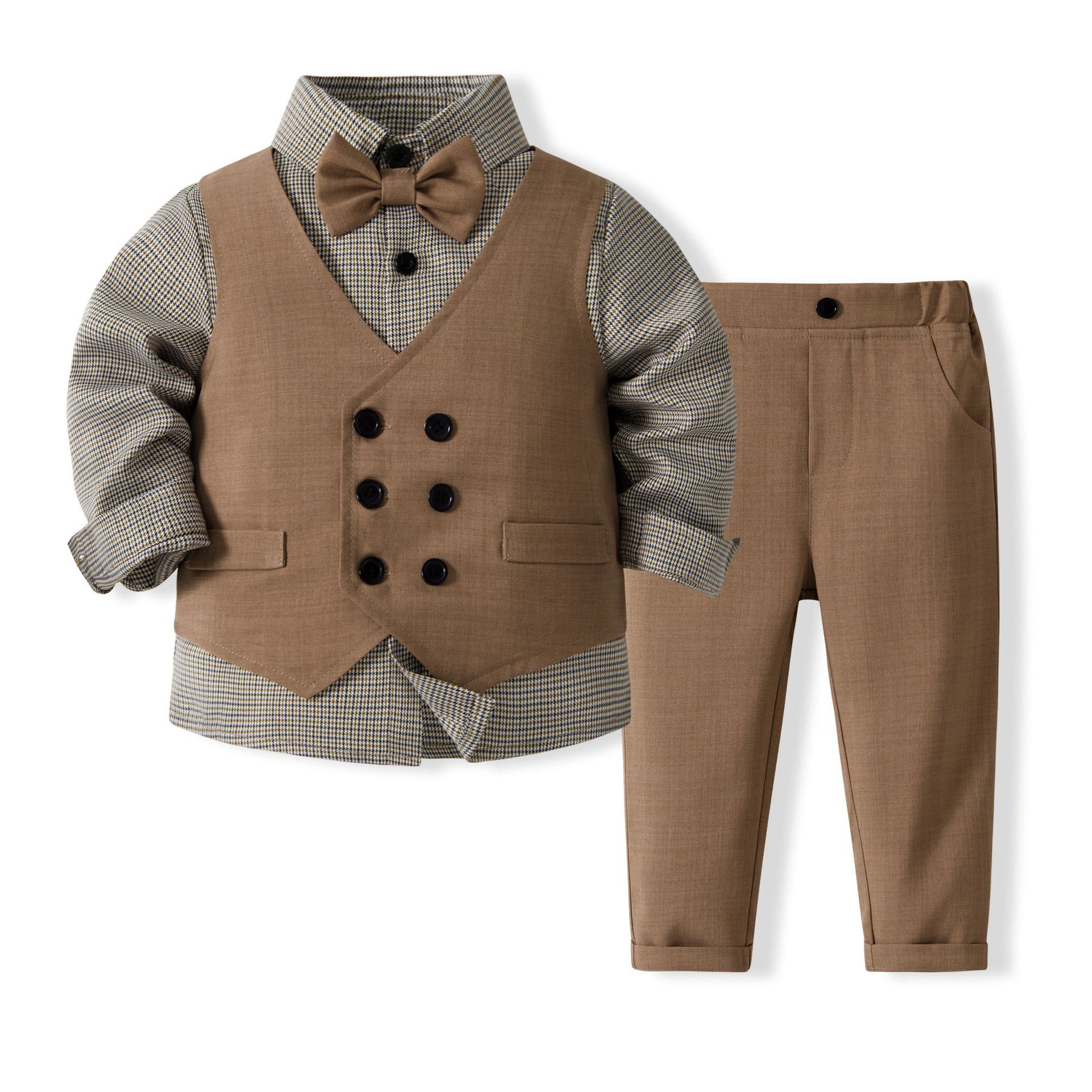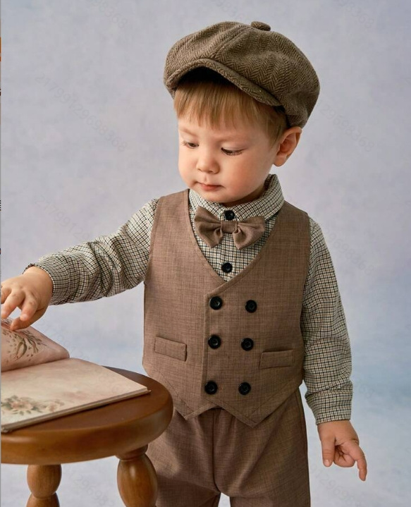 어린이 영국 신사복 남아 더블 브레스티드 조끼 체크무늬 긴팔 셔츠 웨딩 화동 정장 세트