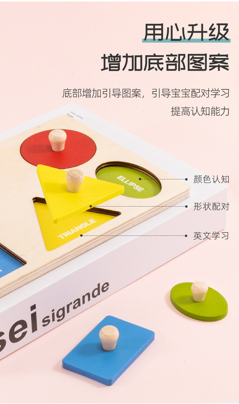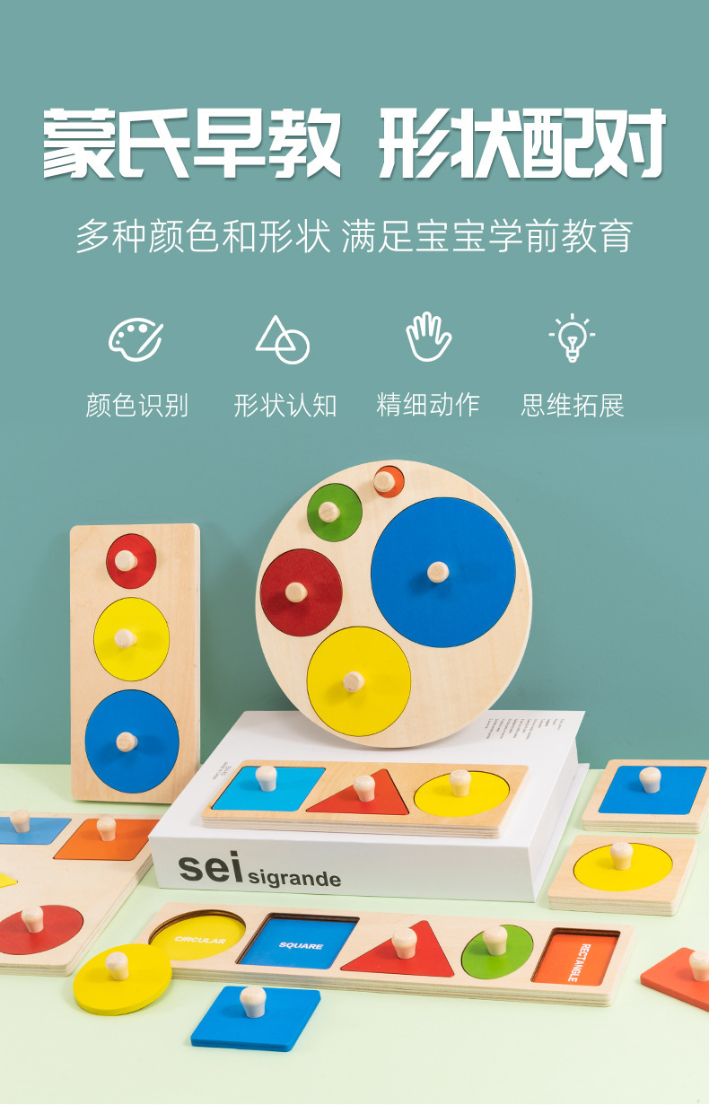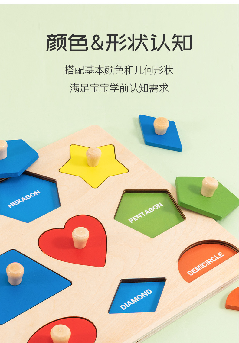 몬테소리 교육 기하학 그림 핸드 그랩 보드 패널 지능 퍼즐 모양 일치 인지 조기 교육 어린이 장난감스토어 가기
