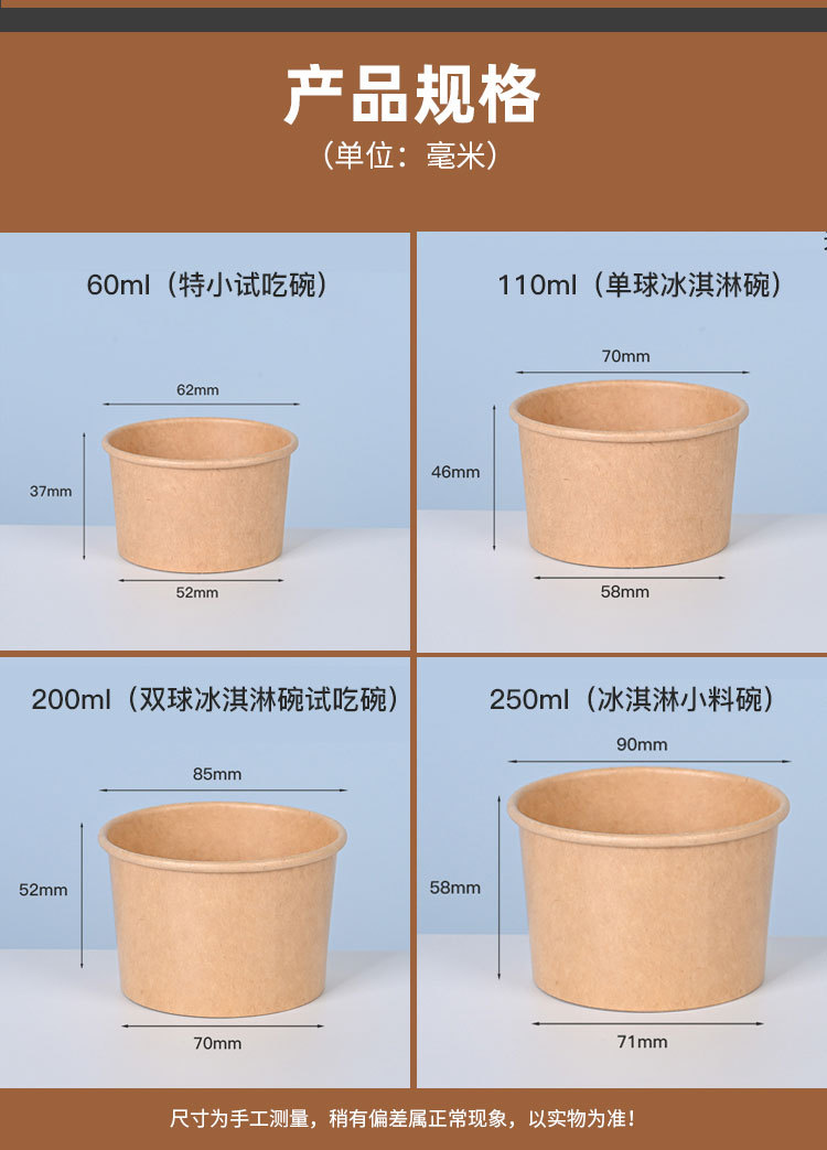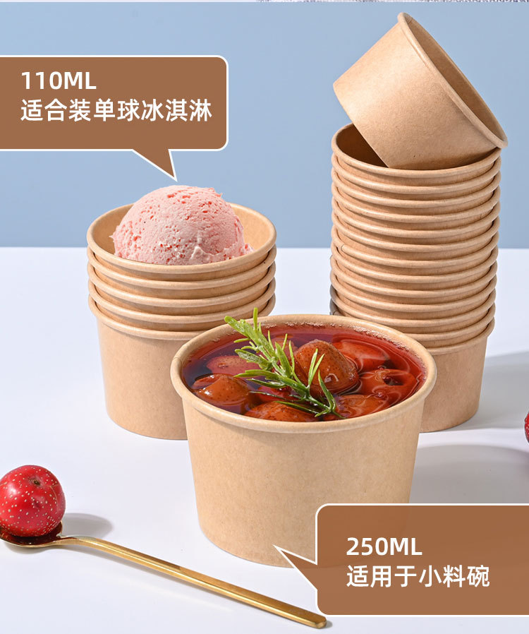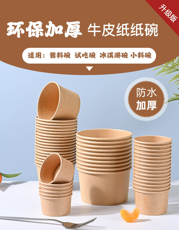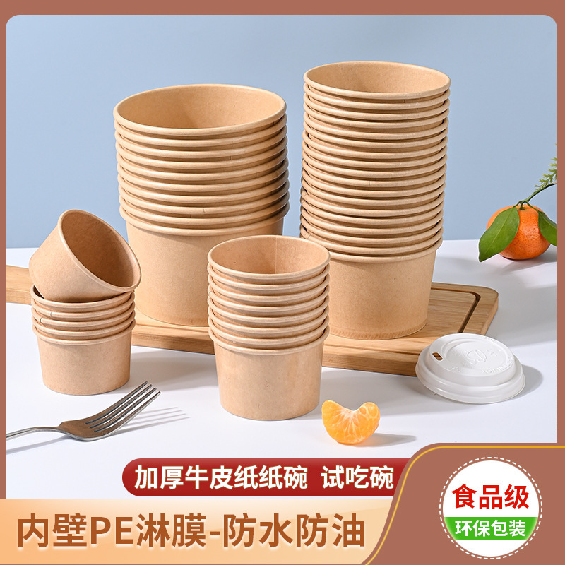 일회용 시음 그릇, 두꺼운 크래프트 종이 작은 그릇, 상업용 시음 음료, 아이스크림 스낵, 케이크 종이컵스토어 가기