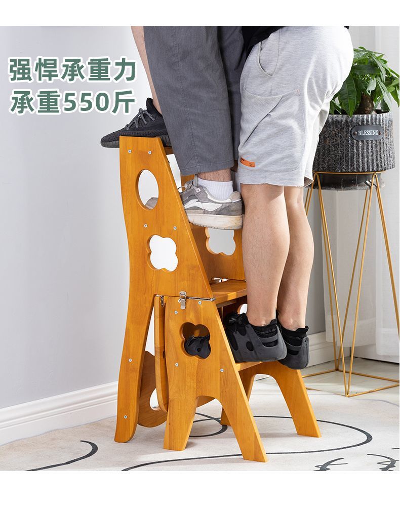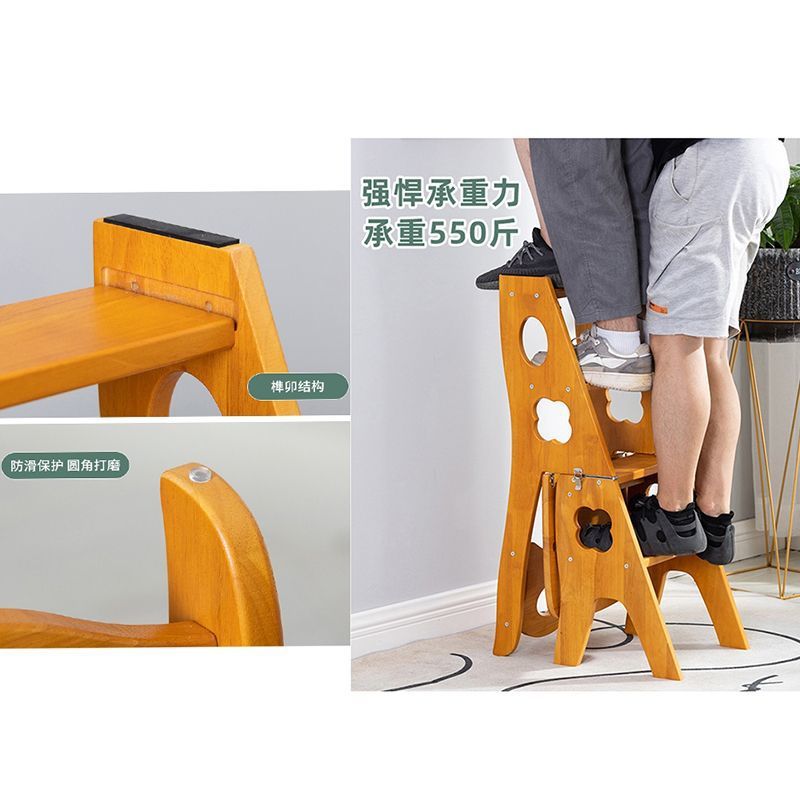 고무 나무 단단한 나무 사다리 의자 가정용 두꺼운 발판 다기능 변형 의자 성인 접이식 의자 이중 목적 사다리 의자스토어 가기