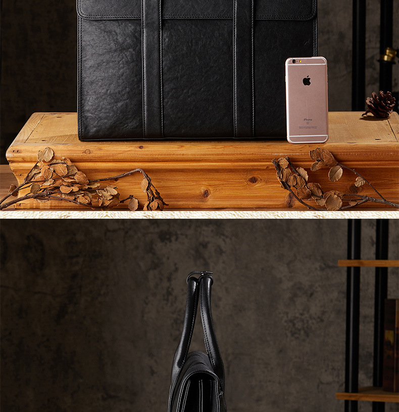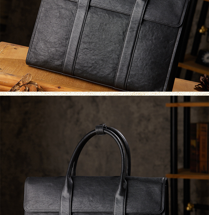 핸드메이드 1층 소가죽 남성용 핸드백, 대용량 비즈니스 서류가방, 심플한 통근 서류가방, 천연가죽 컴퓨터가방스토어 가기