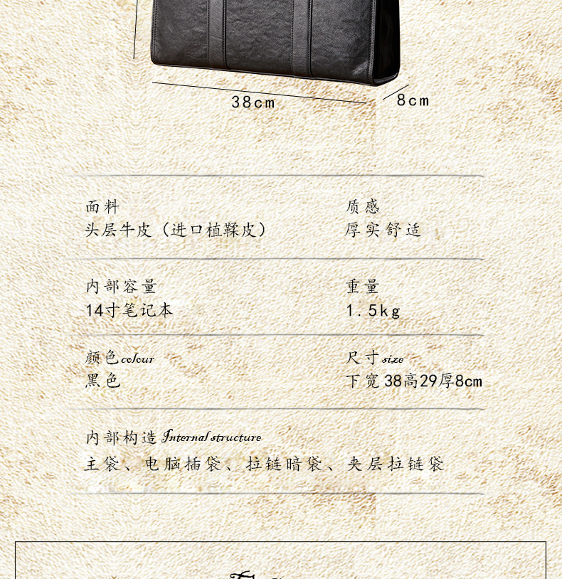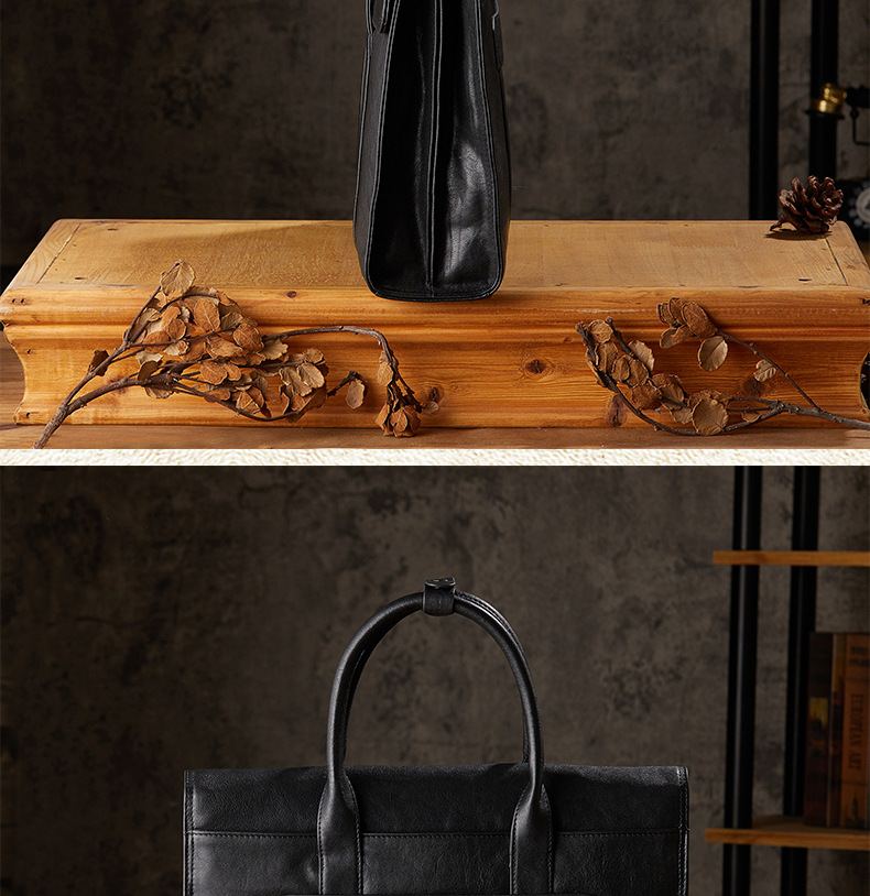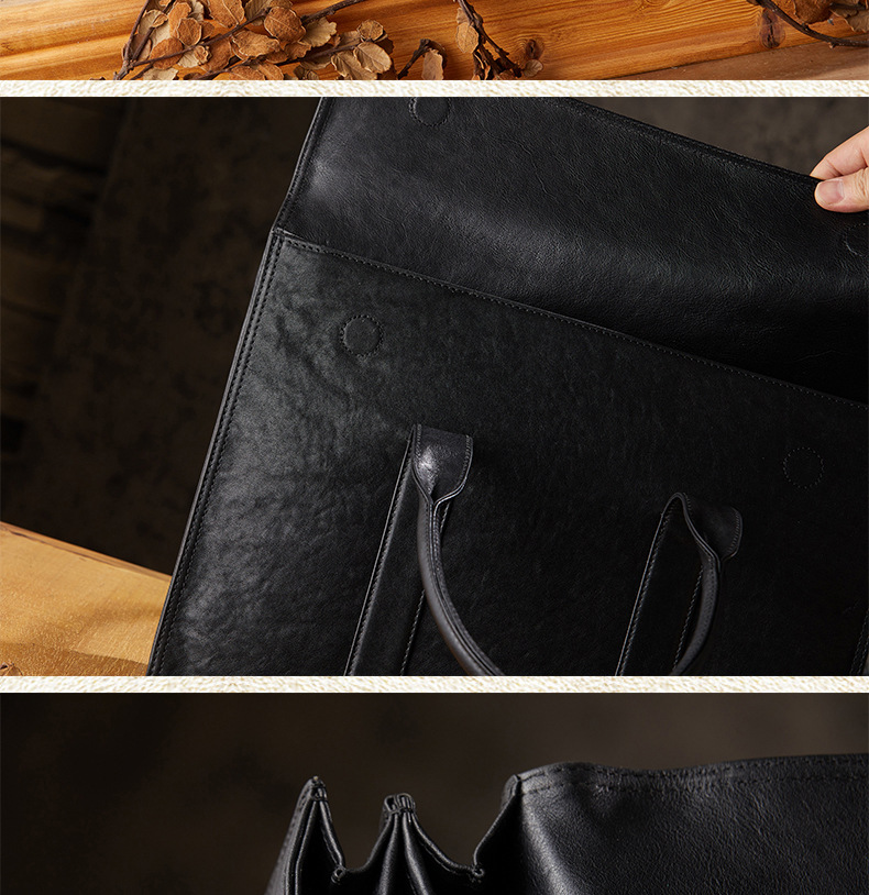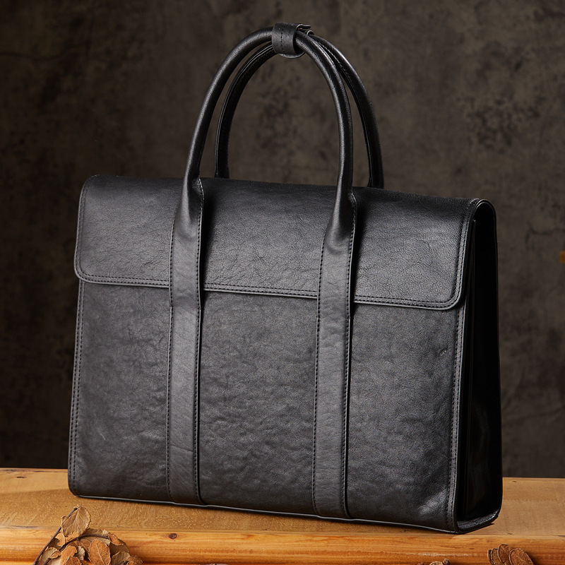 핸드메이드 1층 소가죽 남성용 핸드백, 대용량 비즈니스 서류가방, 심플한 통근 서류가방, 천연가죽 컴퓨터가방