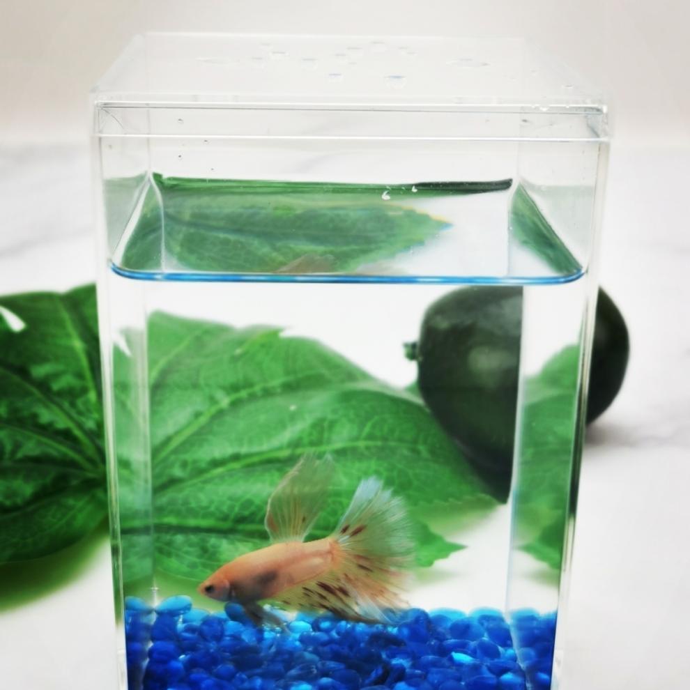 작은 Betta 수조 직사각형 플라스틱 투명한 사육 상자 열대어 번식 수족관 거북이 곤충스토어 가기