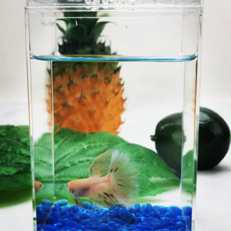 작은 Betta 수조 직사각형 플라스틱 투명한 사육 상자 열대어 번식 수족관 거북이 곤충