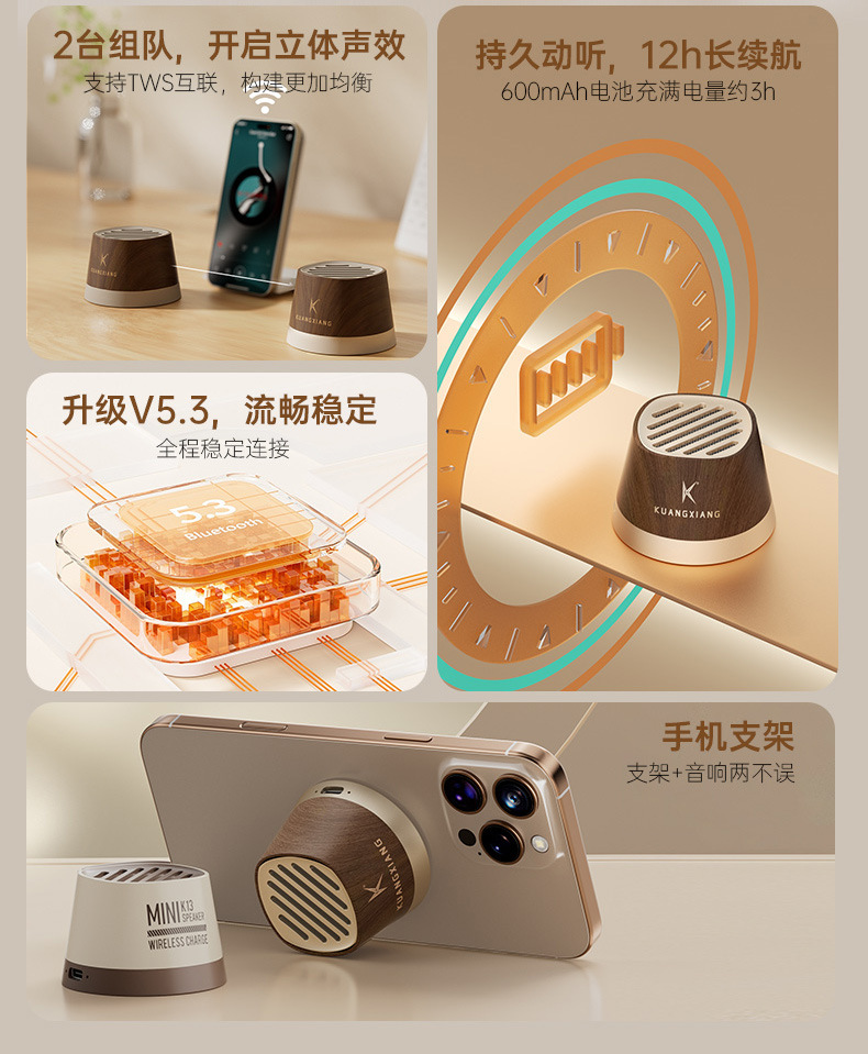 블루투스 스피커 자석 무선 충전기 휴대용 가정용 야외 소형 스피커 욕실 서라운드 2025 스테레오