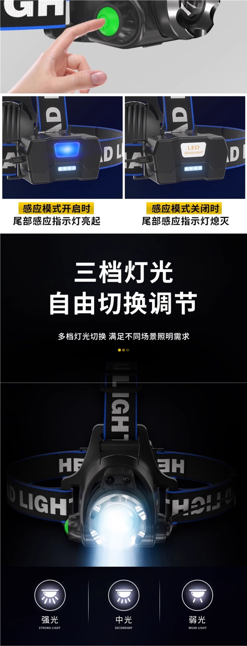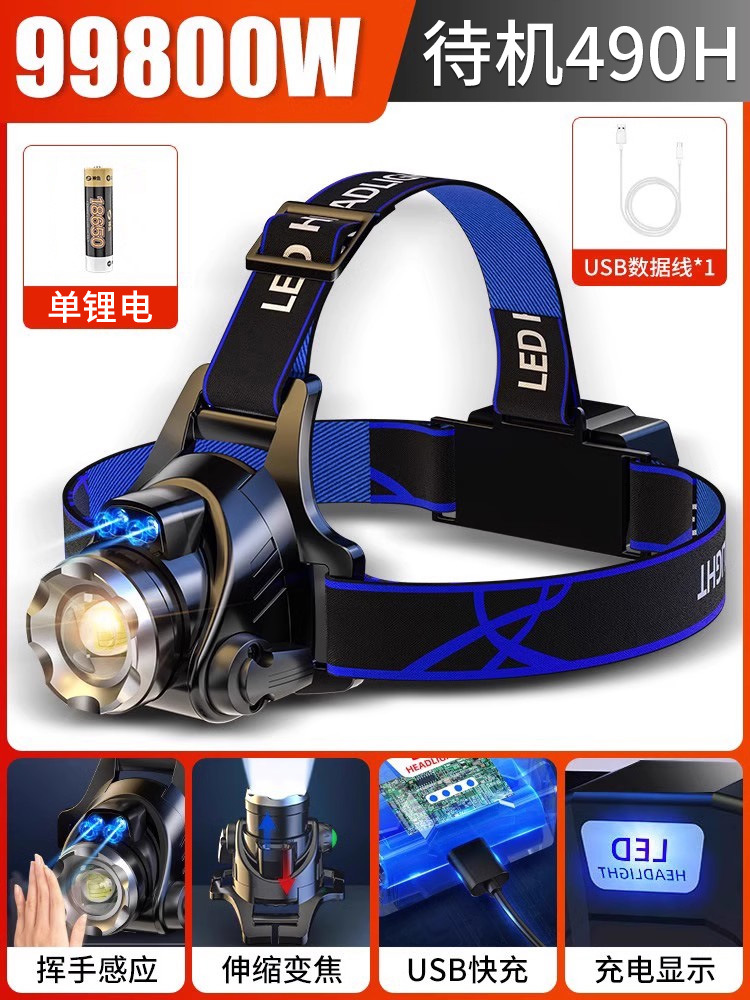 강한 빛으로 충전되는 헤드라이트, 매우 밝고 긴 배터리 수명, 낚시용 헤드 장착형 조명, 야간 낚시용 센서 손전등, 야외용스토어 가기