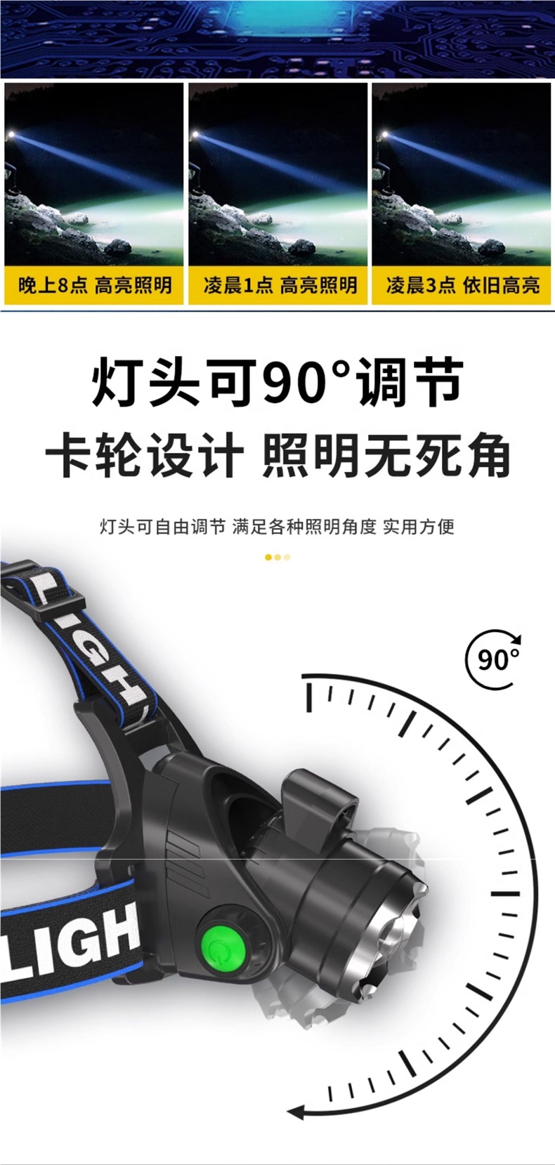 강한 빛으로 충전되는 헤드라이트, 매우 밝고 긴 배터리 수명, 낚시용 헤드 장착형 조명, 야간 낚시용 센서 손전등, 야외용