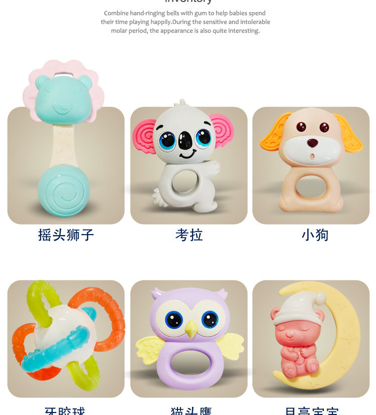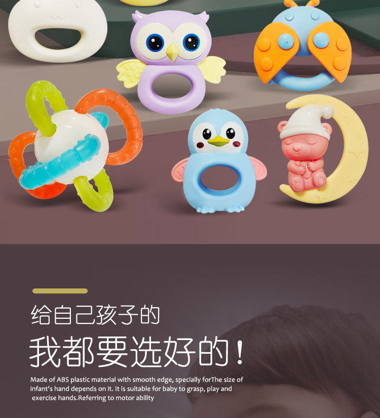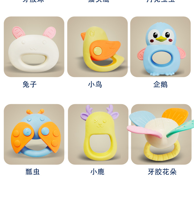 신생아 치아발육기, 손 딸랑이, 씹고 잡을 수 있는 훈련용 0~1세 아기용 부드러운 고무 공 침대 벨 펜던트 장난감스토어 가기