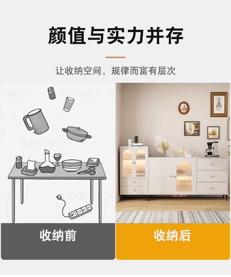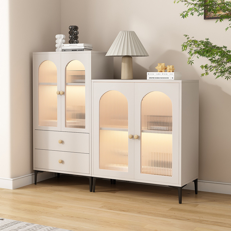 크림 스타일 원목 찬장, 벽걸이 수납장, 가벼운 고급 주방 캐비닛, 차 수납장, 모던하고 심플한스토어 가기
