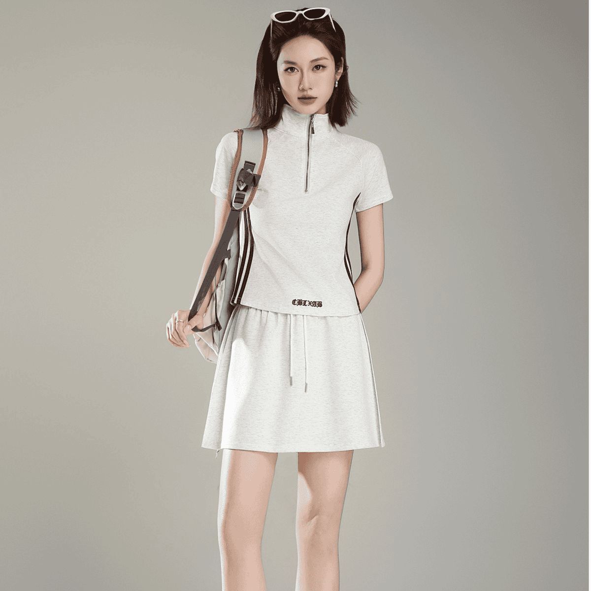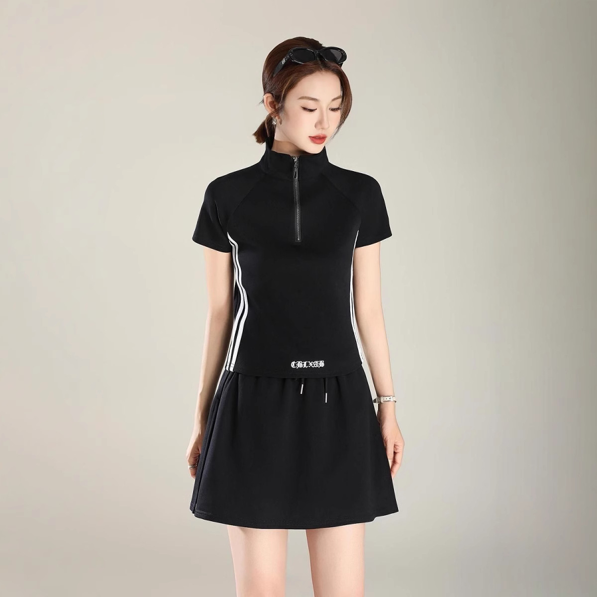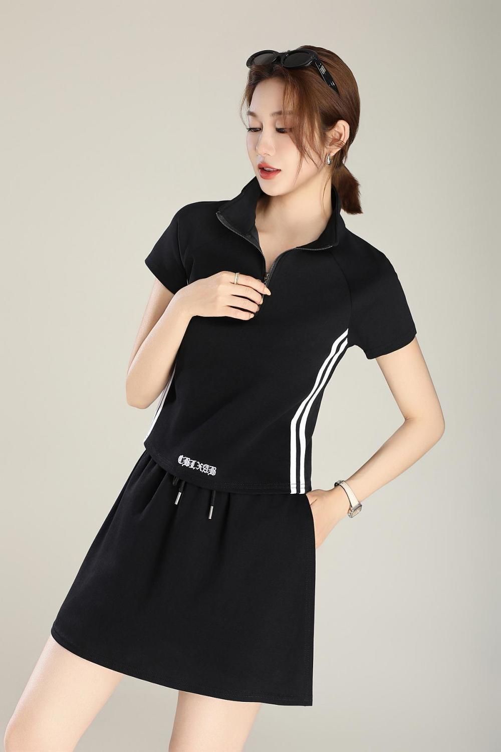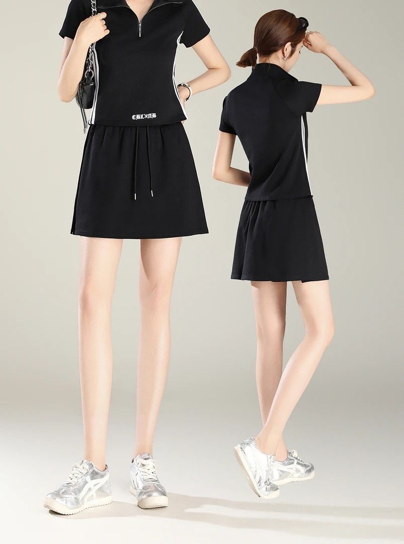 스탠드 칼라 슈트 스커트 2026 신상품, 나이를 줄여주는 캐주얼 패션, 다용도 스포츠 스커트 팬츠 여성 투피스 세트, 아이스 느낌 슈트스토어 가기