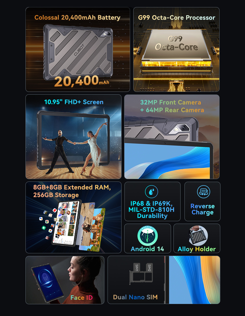 CUBOT 새로운 TAB KINGKONG 2 10.95inch 대형 스크린 카드 삽입형 태블릿 컴퓨터
