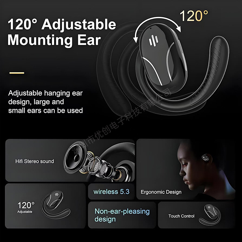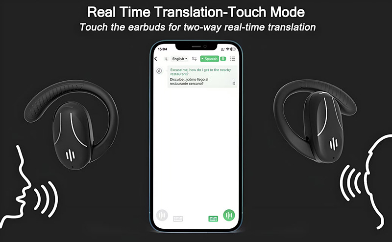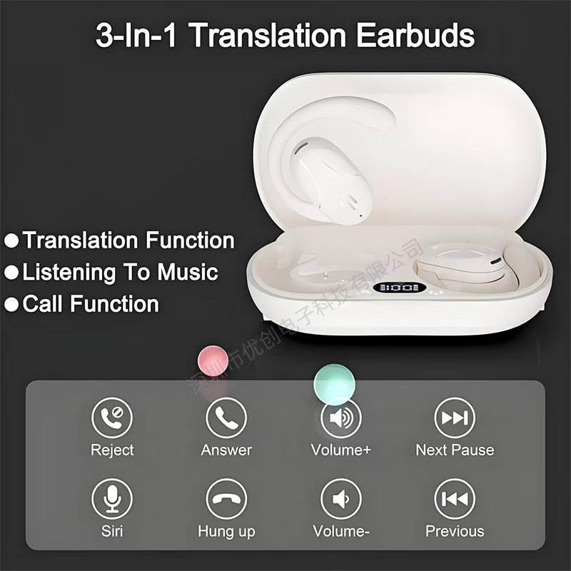 국경 간 대외 무역 AI 지능형 다국어 번역 실시간 동시 번역 Bluetooth 헤드셋 오픈형 귀고리 유형