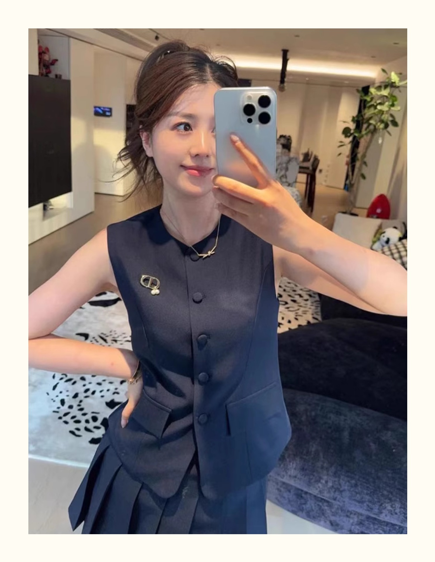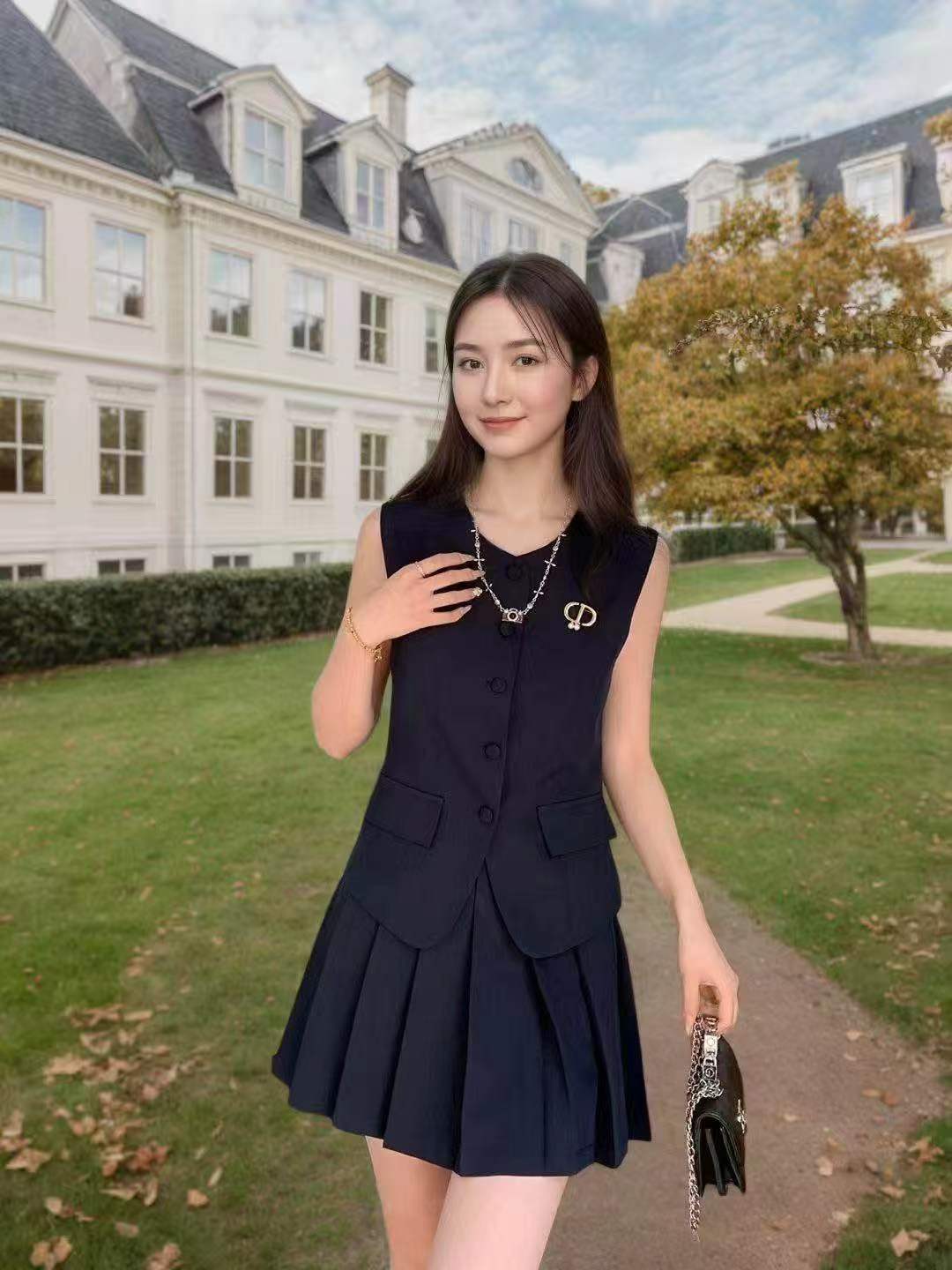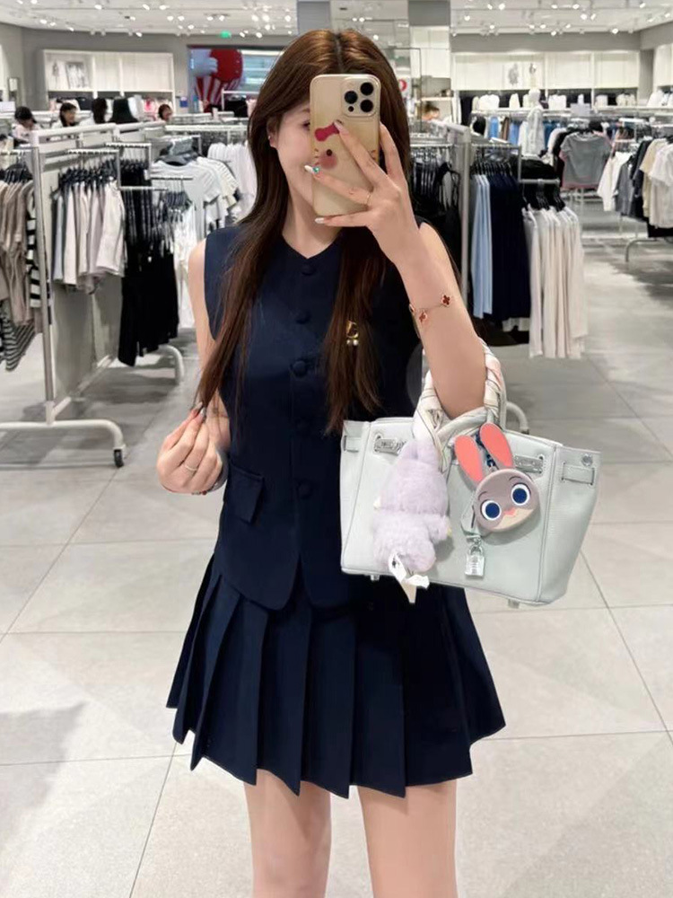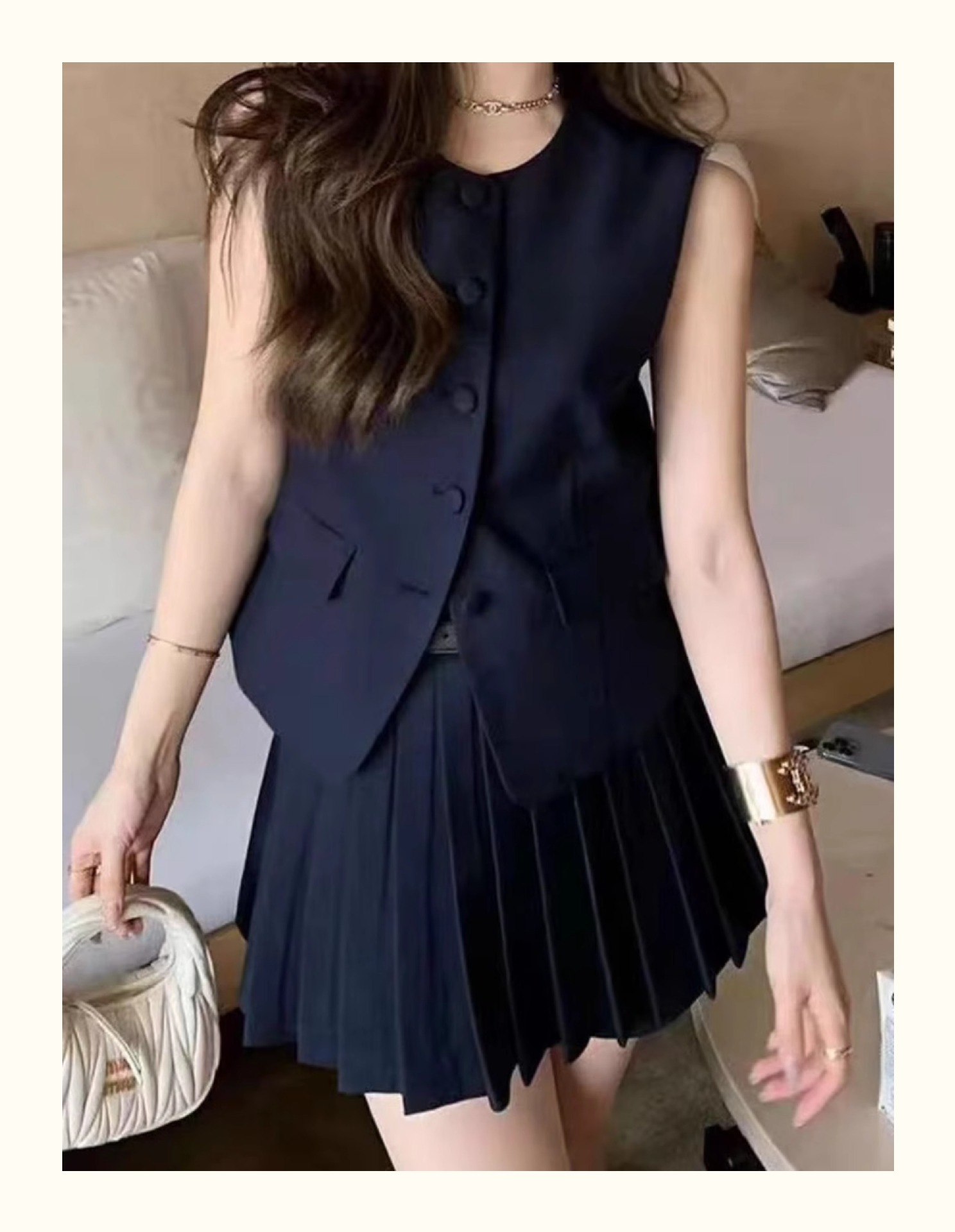 여성을위한 디자인 플리츠 스커트 정장 스커트 2025 여름 새로운 스타일 민소매 세련된 스타일 연령 감소 슬리밍 투피스 세트스토어 가기