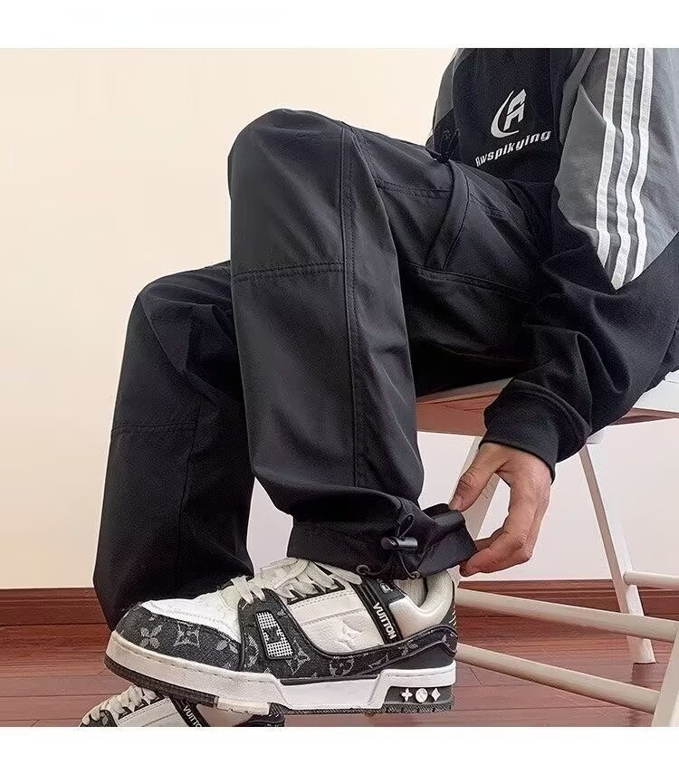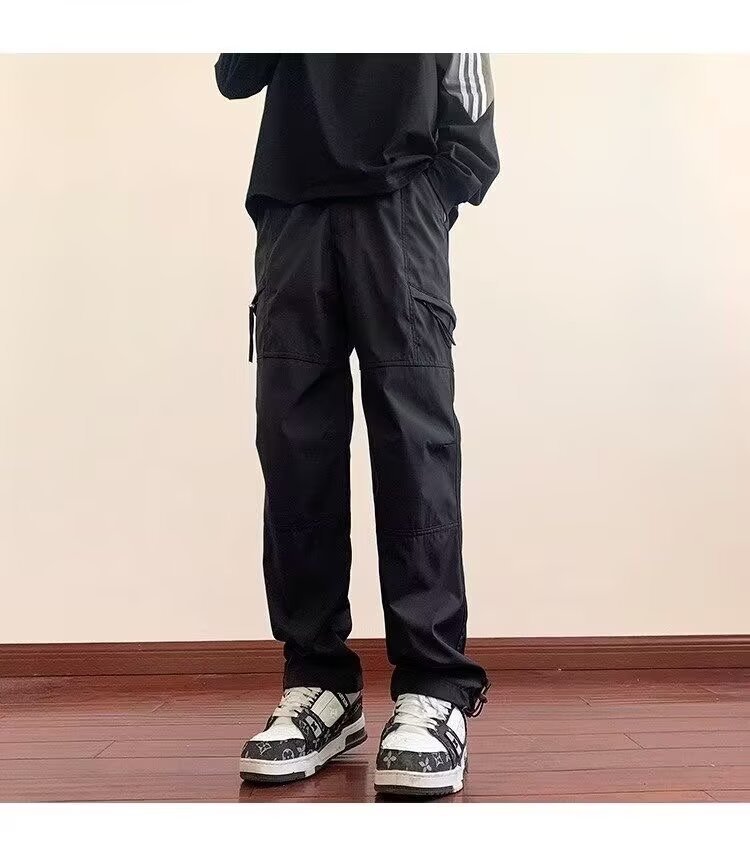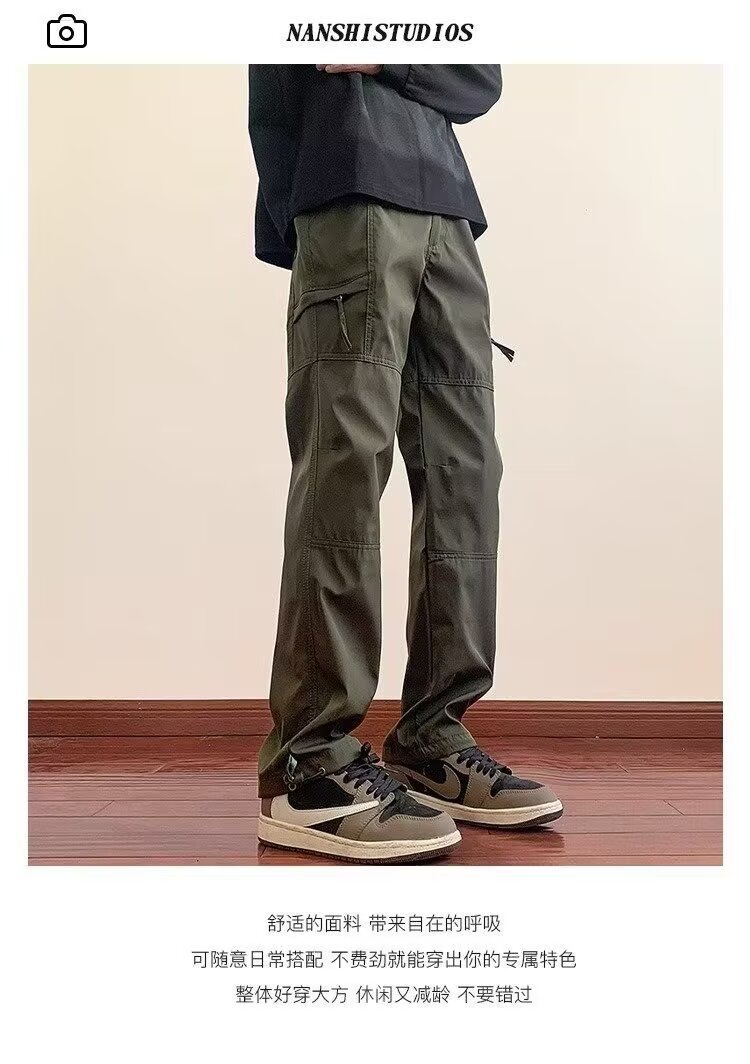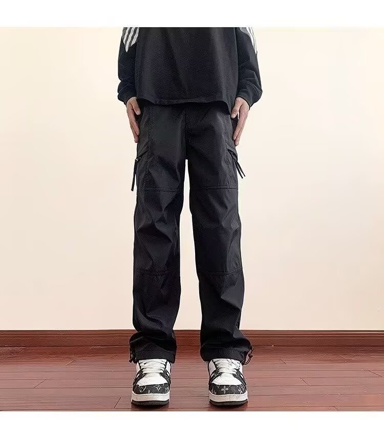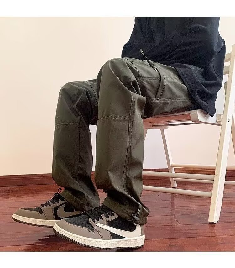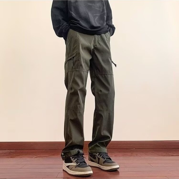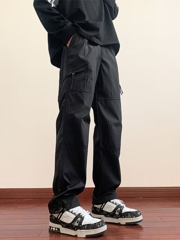2025 카고 바지 남성 여름 루즈 스트레이트 하이킹 바지 트렌디 아메리칸 파라트로opers 기능성 캐주얼 충전 바지