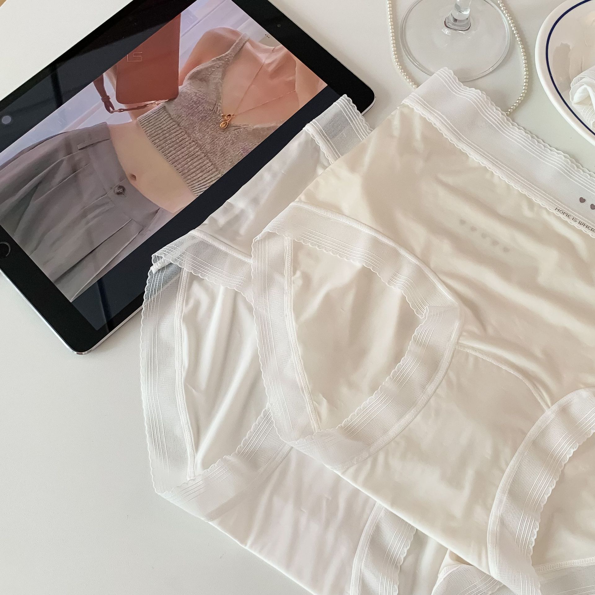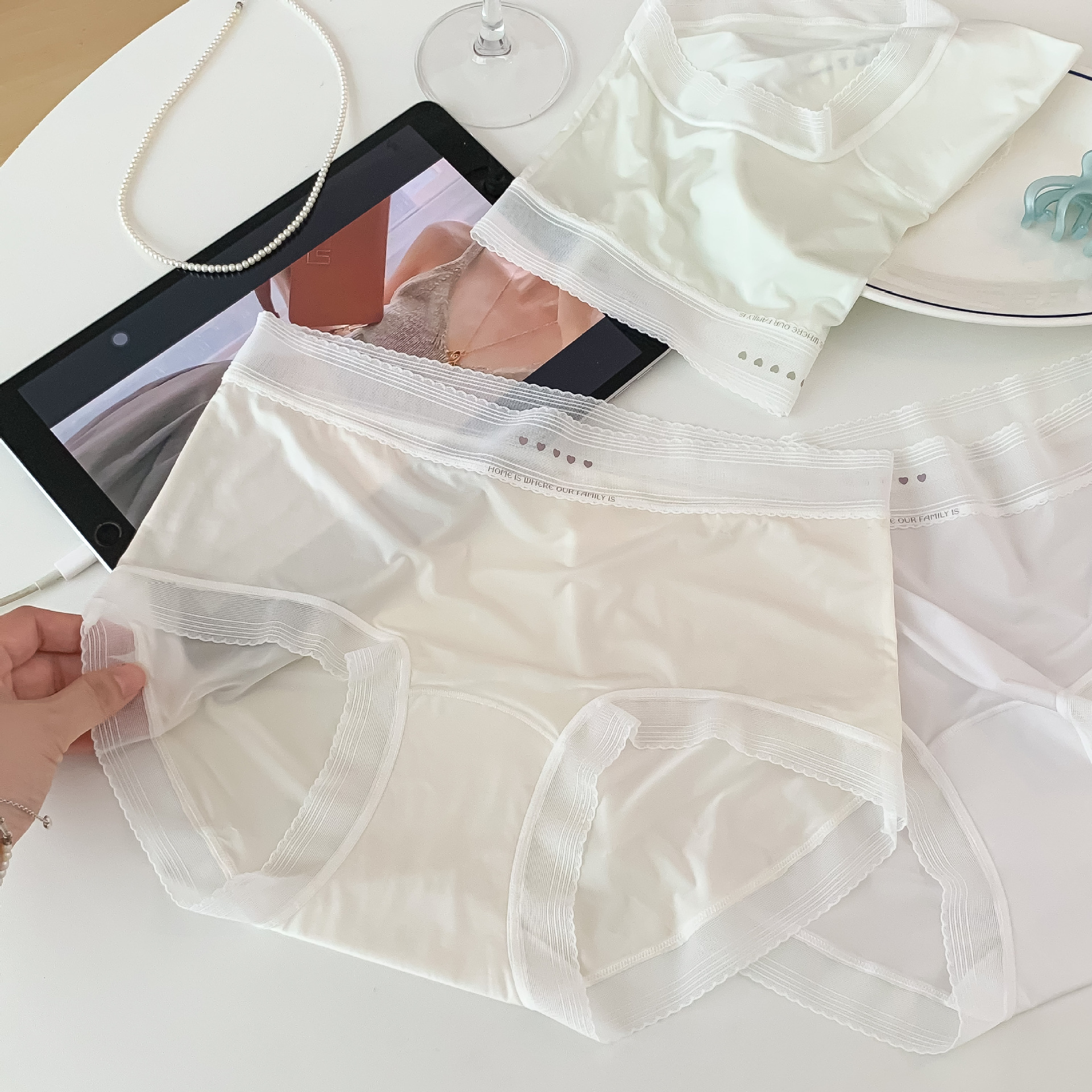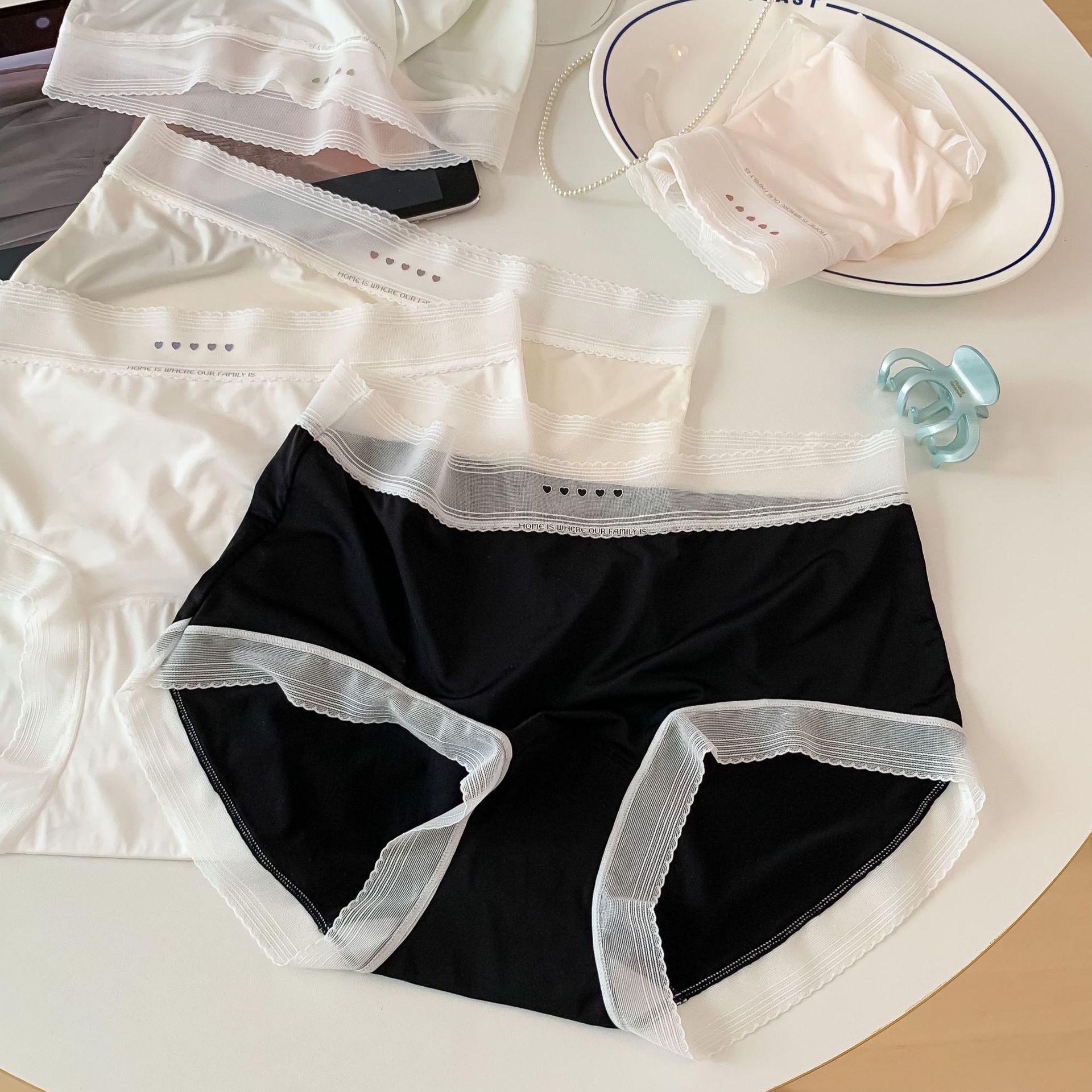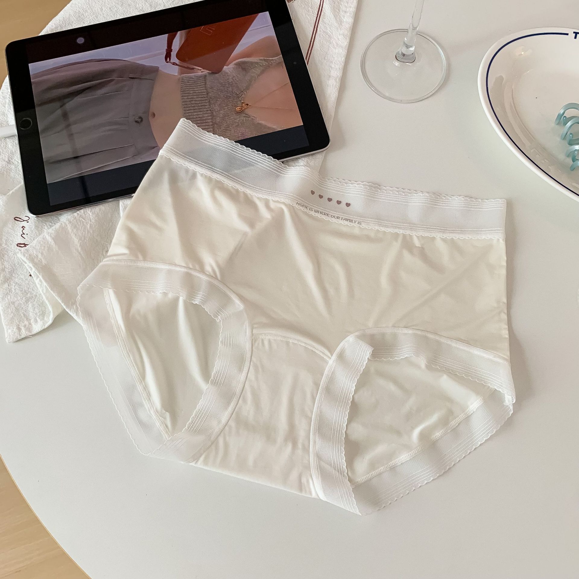 2878 여름 얼음 실크 속옷 여성용 중간 허리 초박형 통기성 시원한 소녀 팬티 순수 코튼 10A 항균 등급스토어 가기