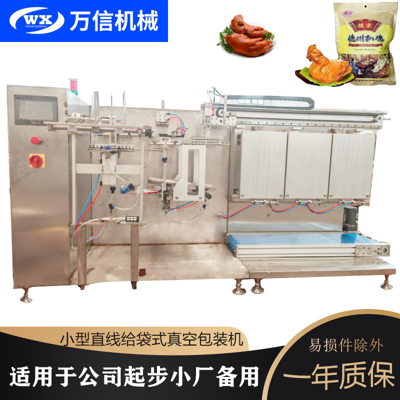 这款新款智能触控给袋式真空包装机聚焦卤味包装需求,将智能化与高效生产深度融合,具备显著优势。智能操作上,搭载 PLC 智能触控系统,可一键切换五香牛肉、德州扒鸡、卤猪蹄等不同产品的包装参数,无需专业人员调试,降低操作门槛;高效产能方面,采用全自动旋转式给袋作业模式,多工位同步运行,每分钟可完成 30 - 40 次包装循环,效率是传统设备的 2 倍以上,有效节省人力与时间成本。