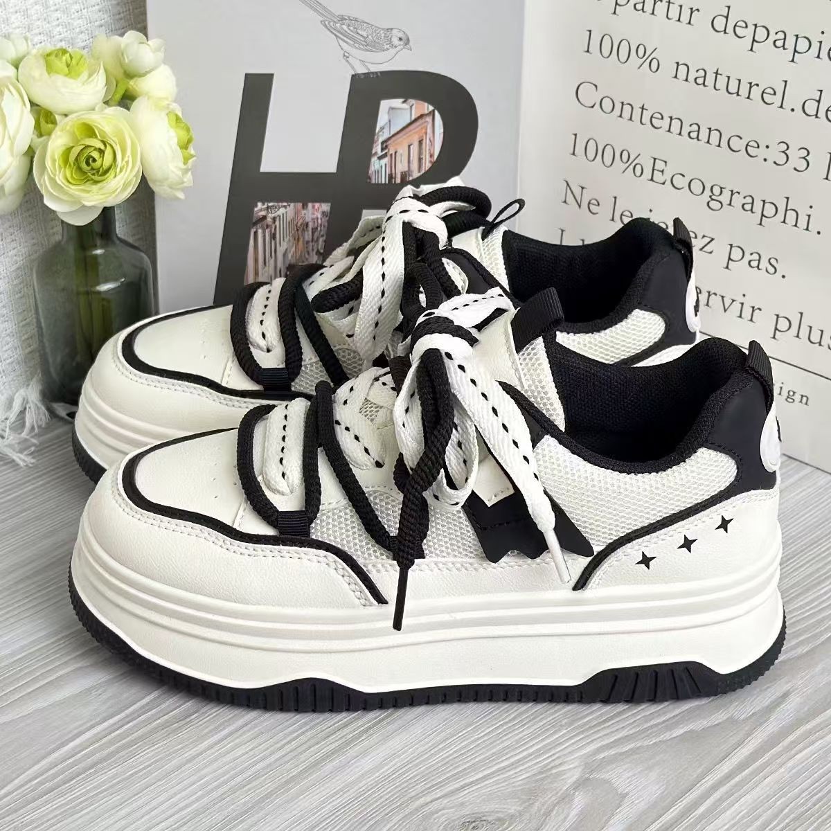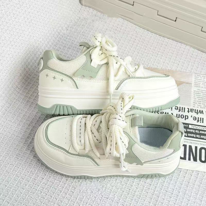 여성을위한 달콤한 소녀 다목적 두꺼운 밑창 핑크 흰색 신발 2025 여름 새로운 메쉬 통기성 운동화 캐주얼 캠퍼스 여성 신발스토어 가기