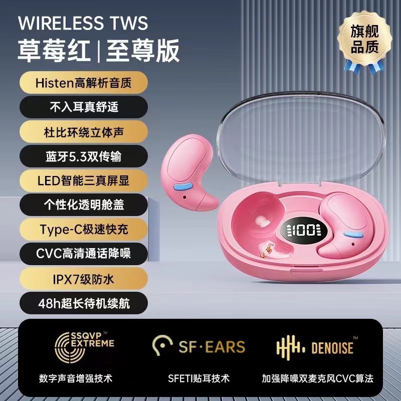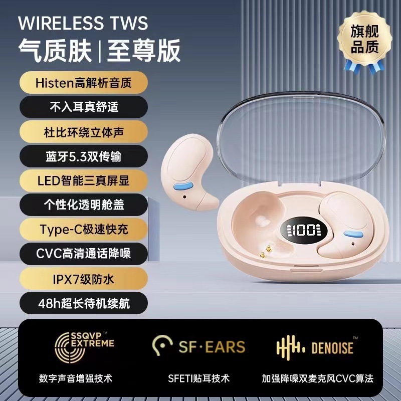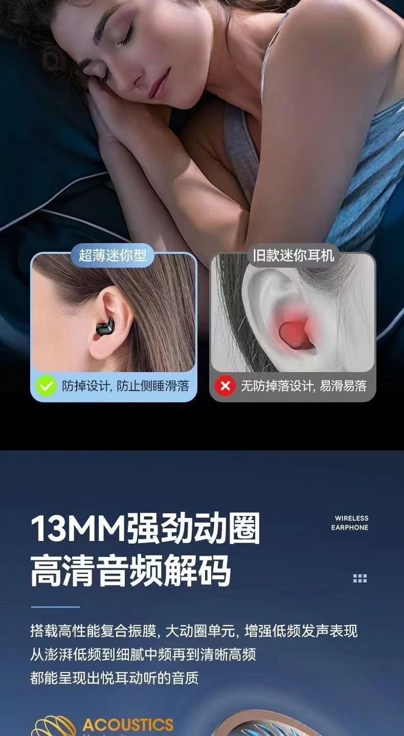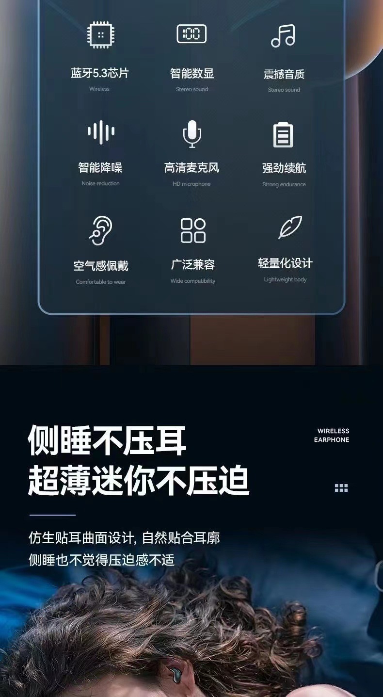 2025 새로운 골전도 진정한 무선 수면 블루투스 헤드셋 보이지 않는 미니 이어폰 소음 감소 장기간 착용 시 통증 없음