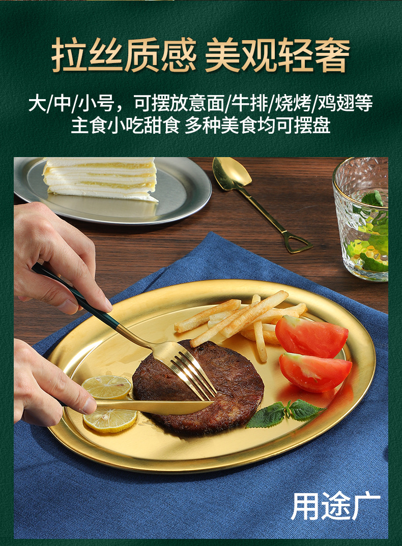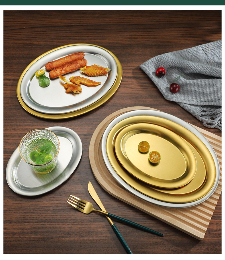 한국식 바베큐 접시 타원형 식판 두꺼운 스테인리스 생선 접시 가정용 스테이크 접시 상업용 식당 접시