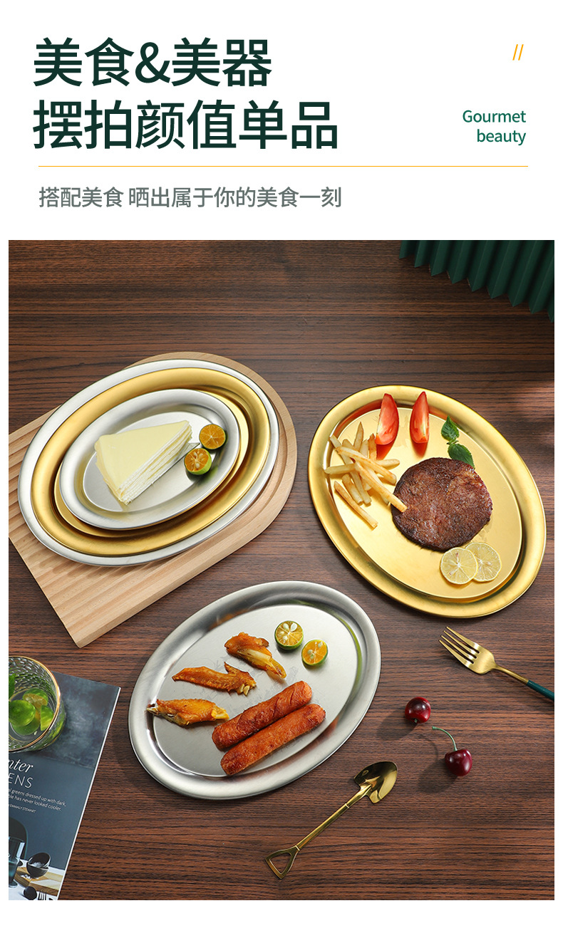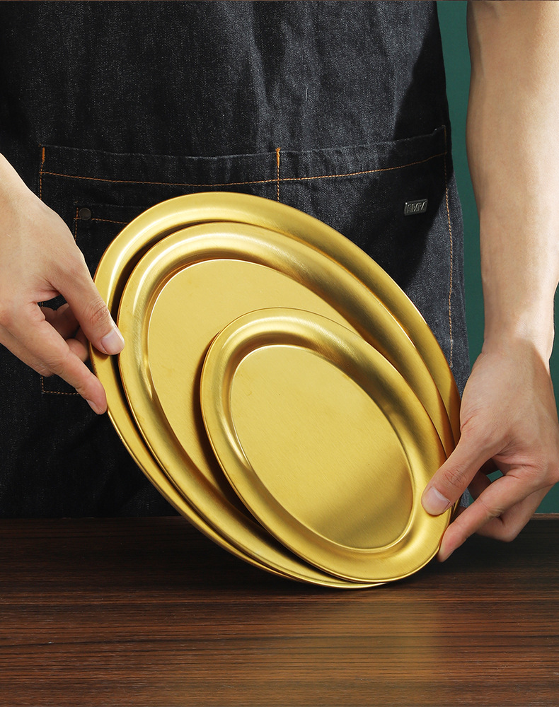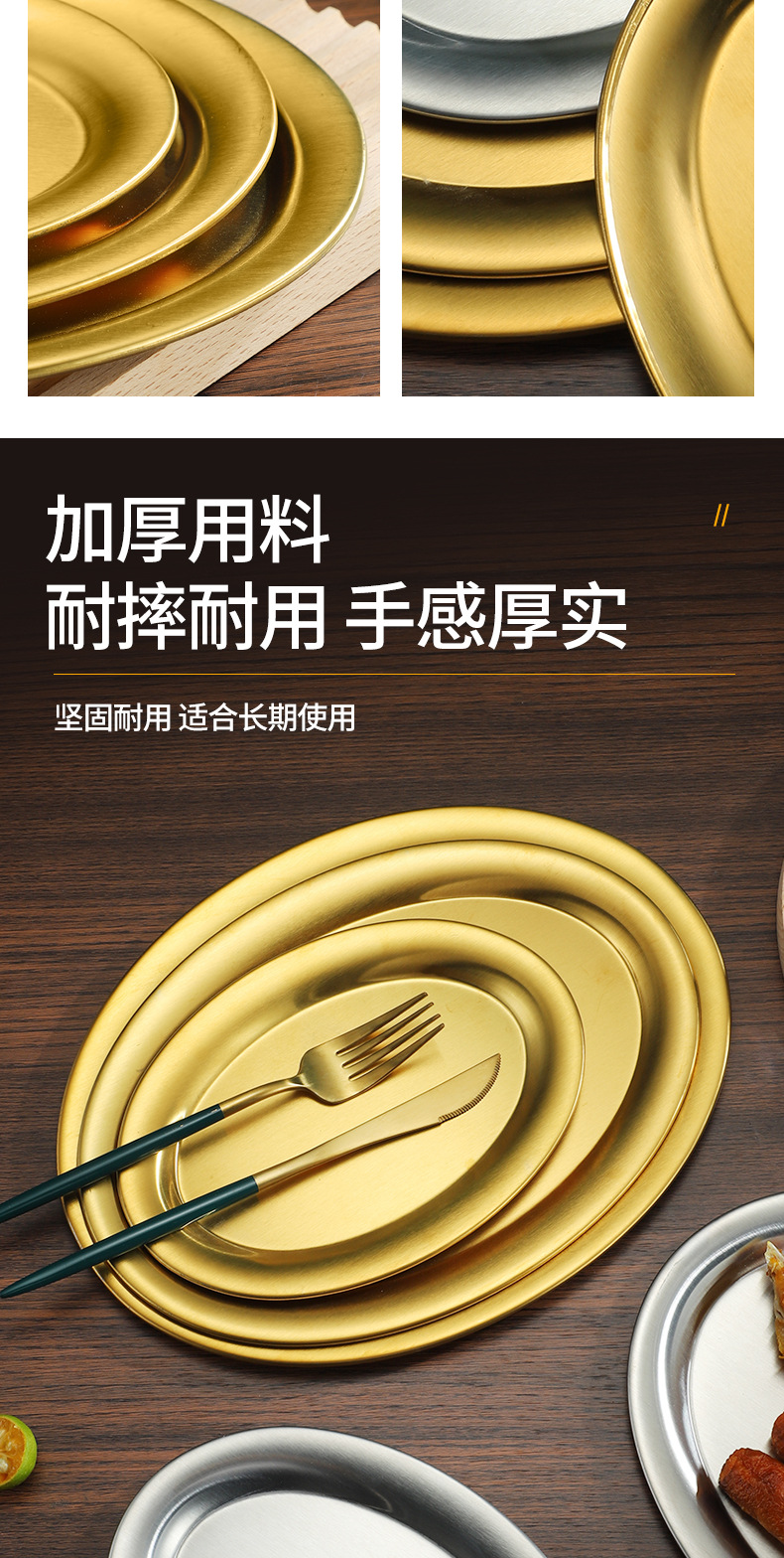 한국식 바베큐 접시 타원형 식판 두꺼운 스테인리스 생선 접시 가정용 스테이크 접시 상업용 식당 접시스토어 가기