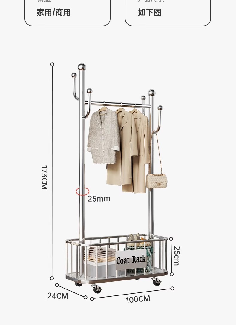 코트 랙 바닥 침실 조명 럭셔리 홈 옷 걸이 이동식 2025 새로운 스테인레스 스틸 다기능 옷 건조 랙스토어 가기