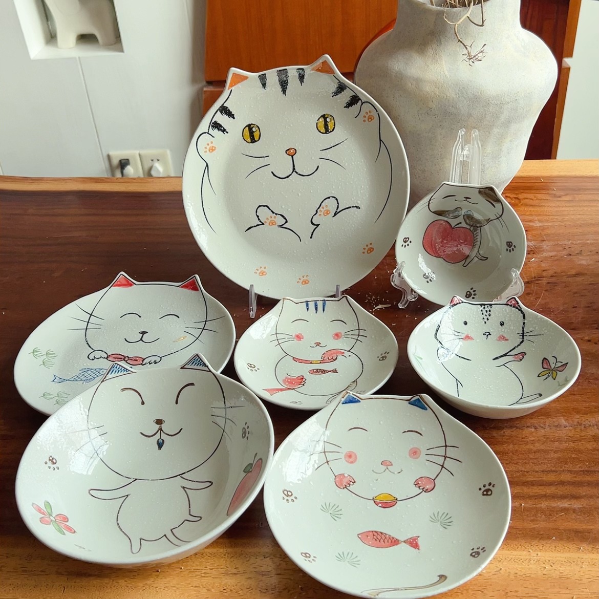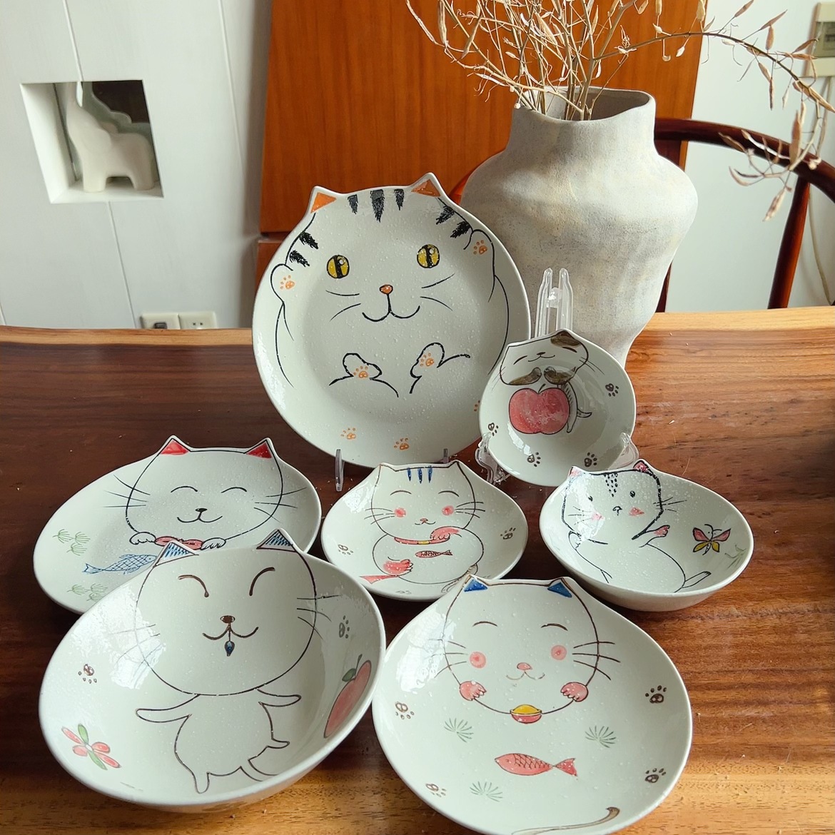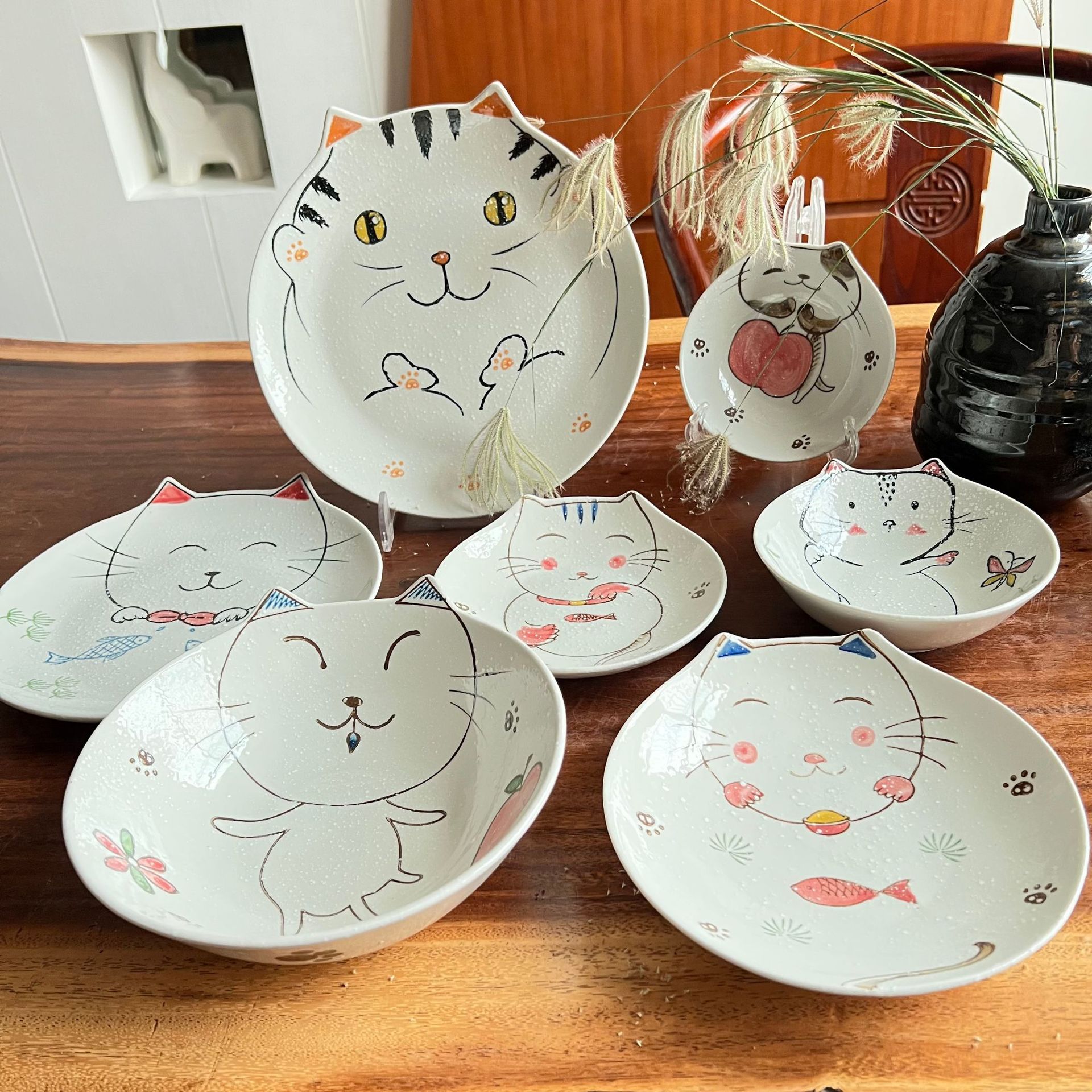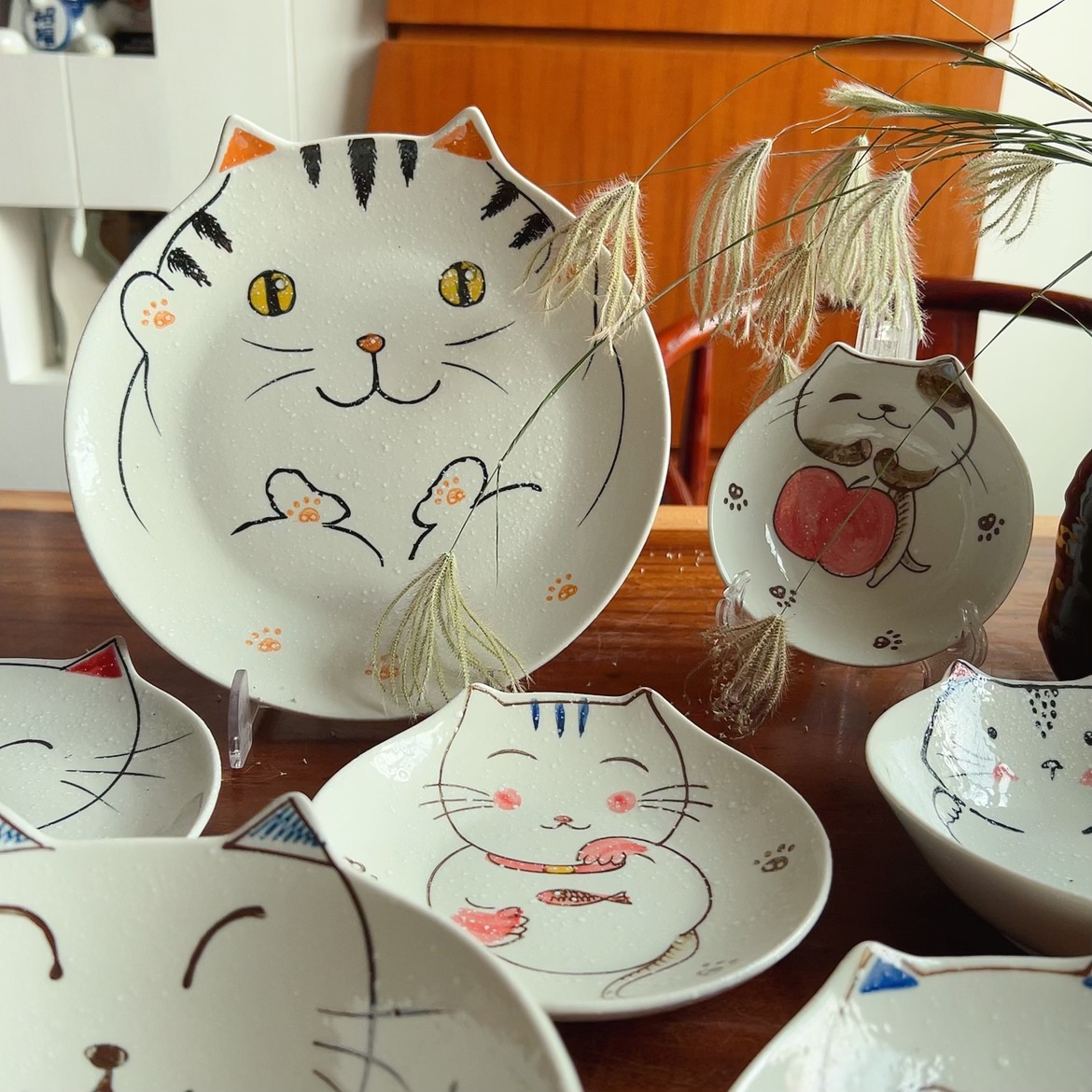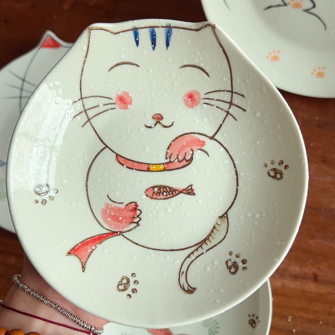 크리 에이 티브 북유럽 고양이 접시 세라믹 일본어 underglaze 색상 손으로 그린 그릇 홈 만화 저녁 식사 접시 스타일스토어 가기