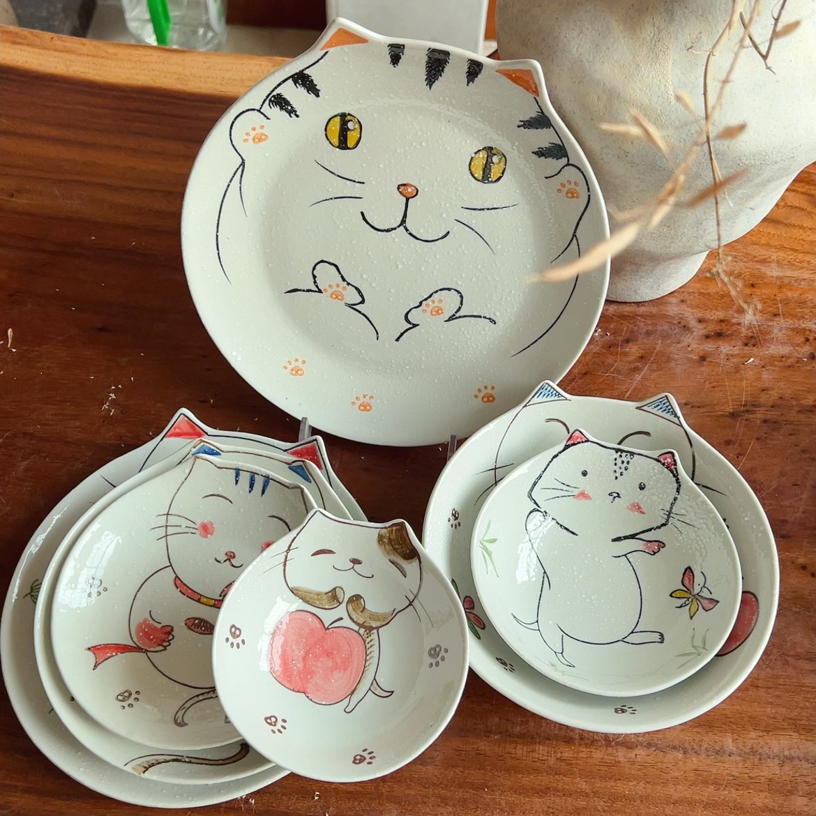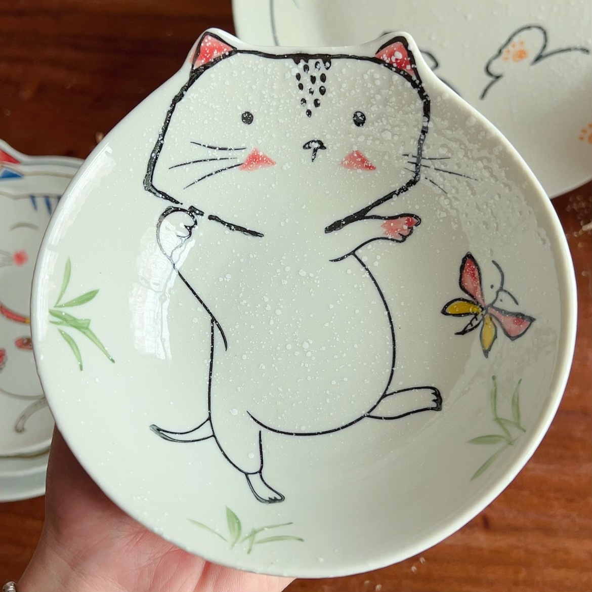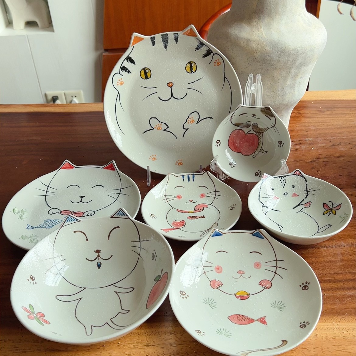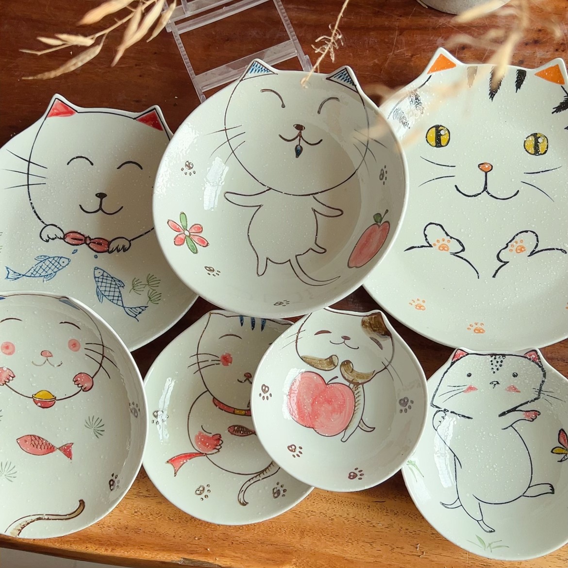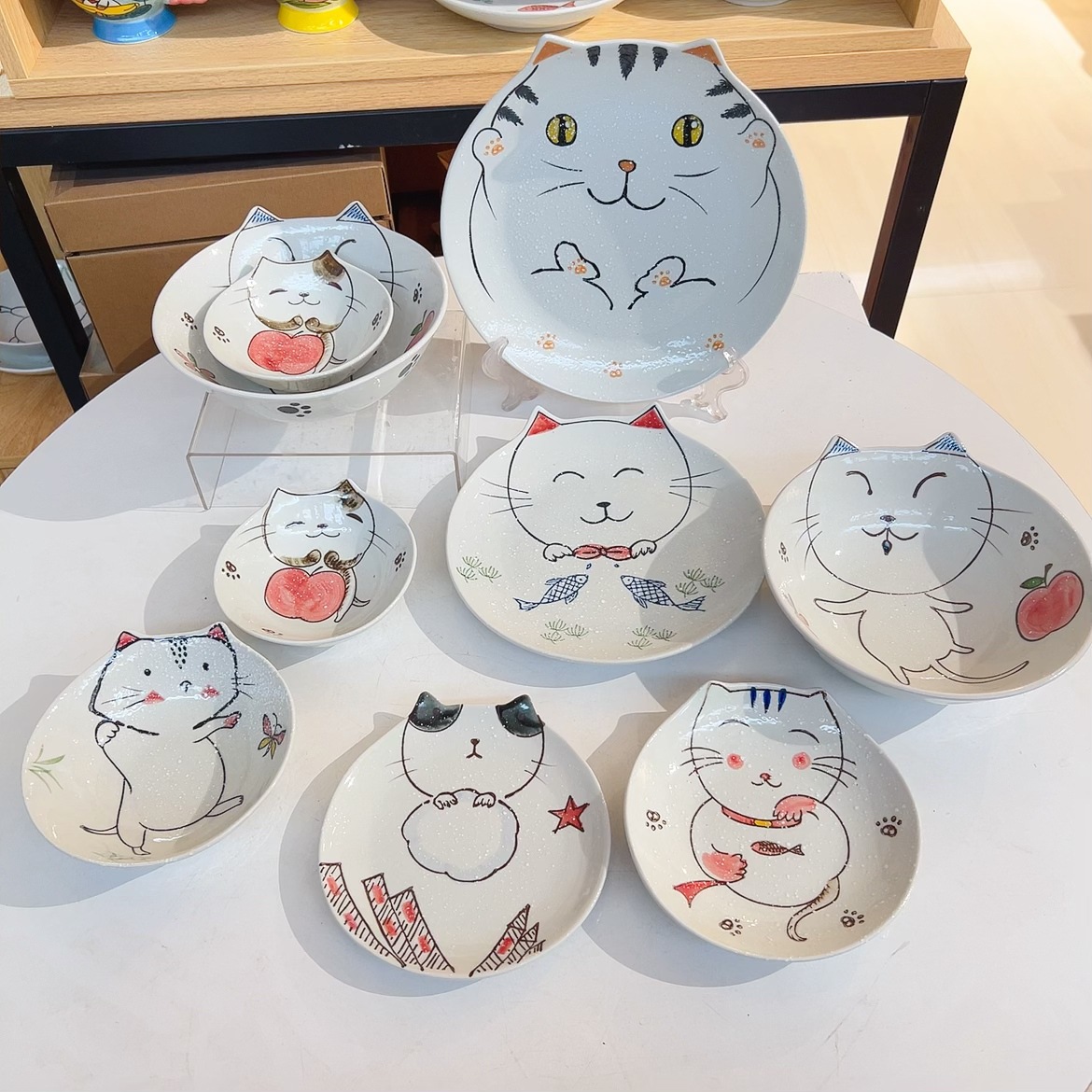 크리 에이 티브 북유럽 고양이 접시 세라믹 일본어 underglaze 색상 손으로 그린 그릇 홈 만화 저녁 식사 접시 스타일스토어 가기