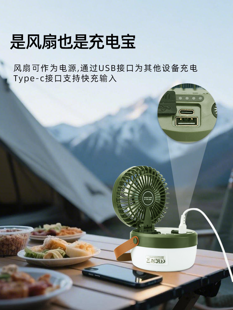 • 태양열 팬 캠핑 라이트 ☆ (아미 그린)