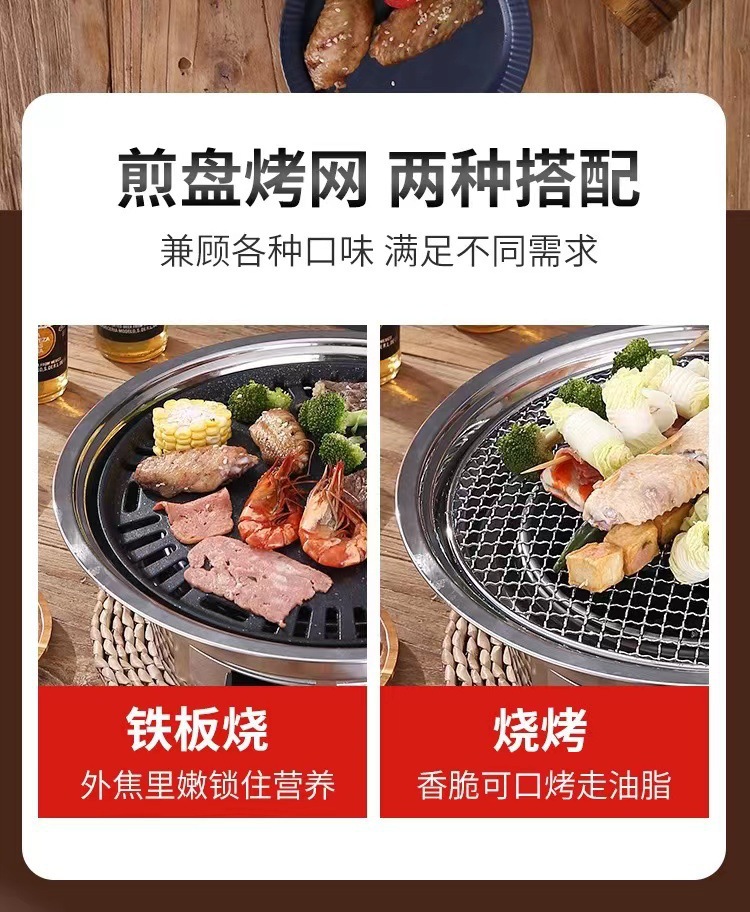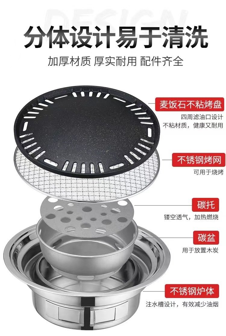 한국 숯불 바베큐 그릴 상업용 원형 스테인레스 스틸 바베큐 그릴 가정용 실내 소형 휴대용 야외 숯불 그릴