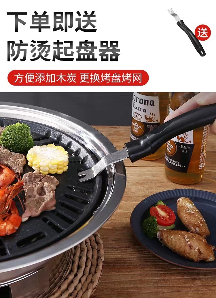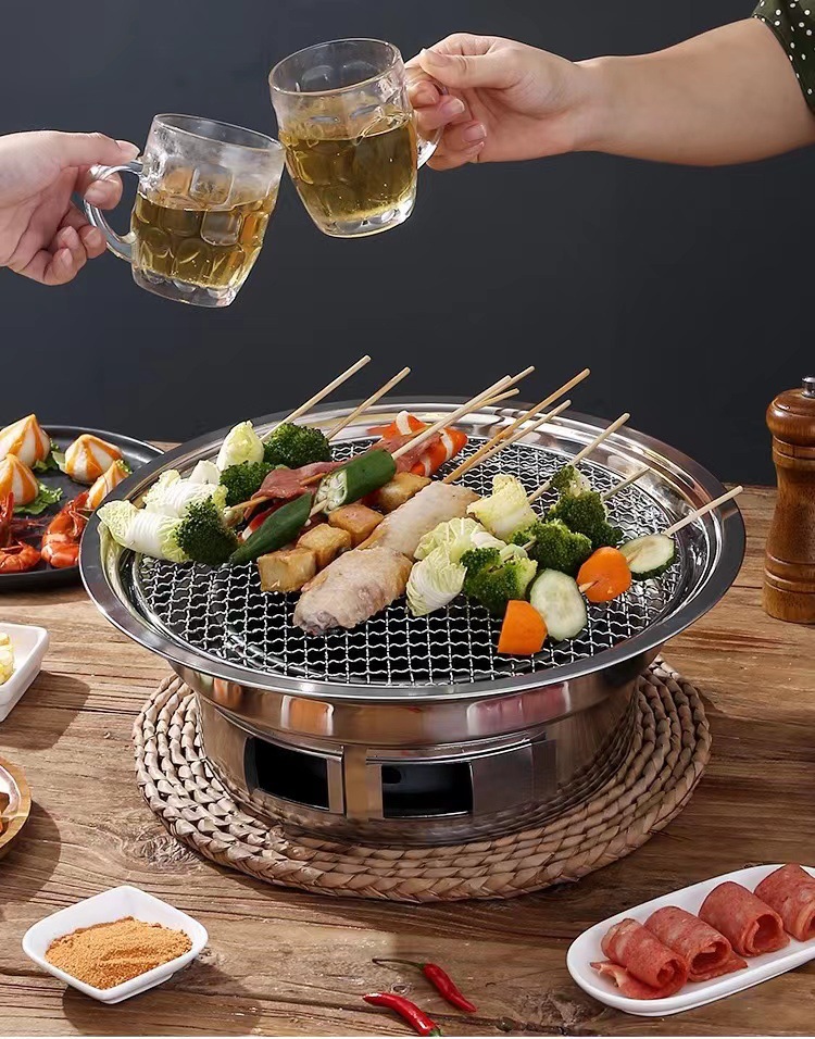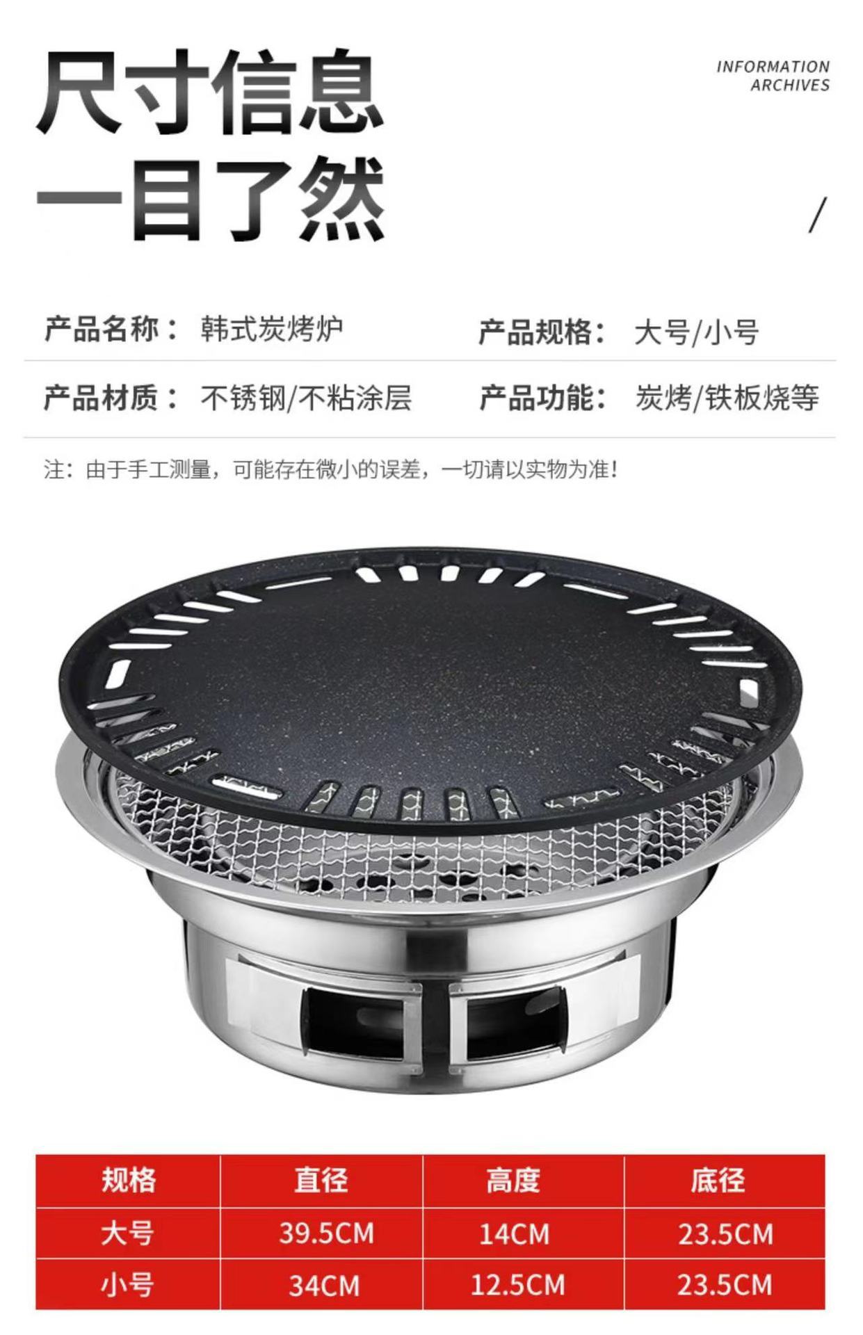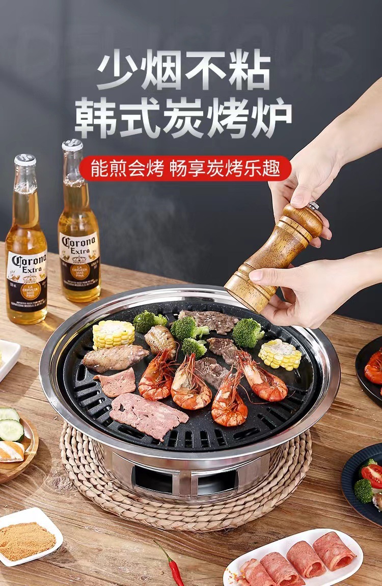 한국 숯불 바베큐 그릴 상업용 원형 스테인레스 스틸 바베큐 그릴 가정용 실내 소형 휴대용 야외 숯불 그릴스토어 가기