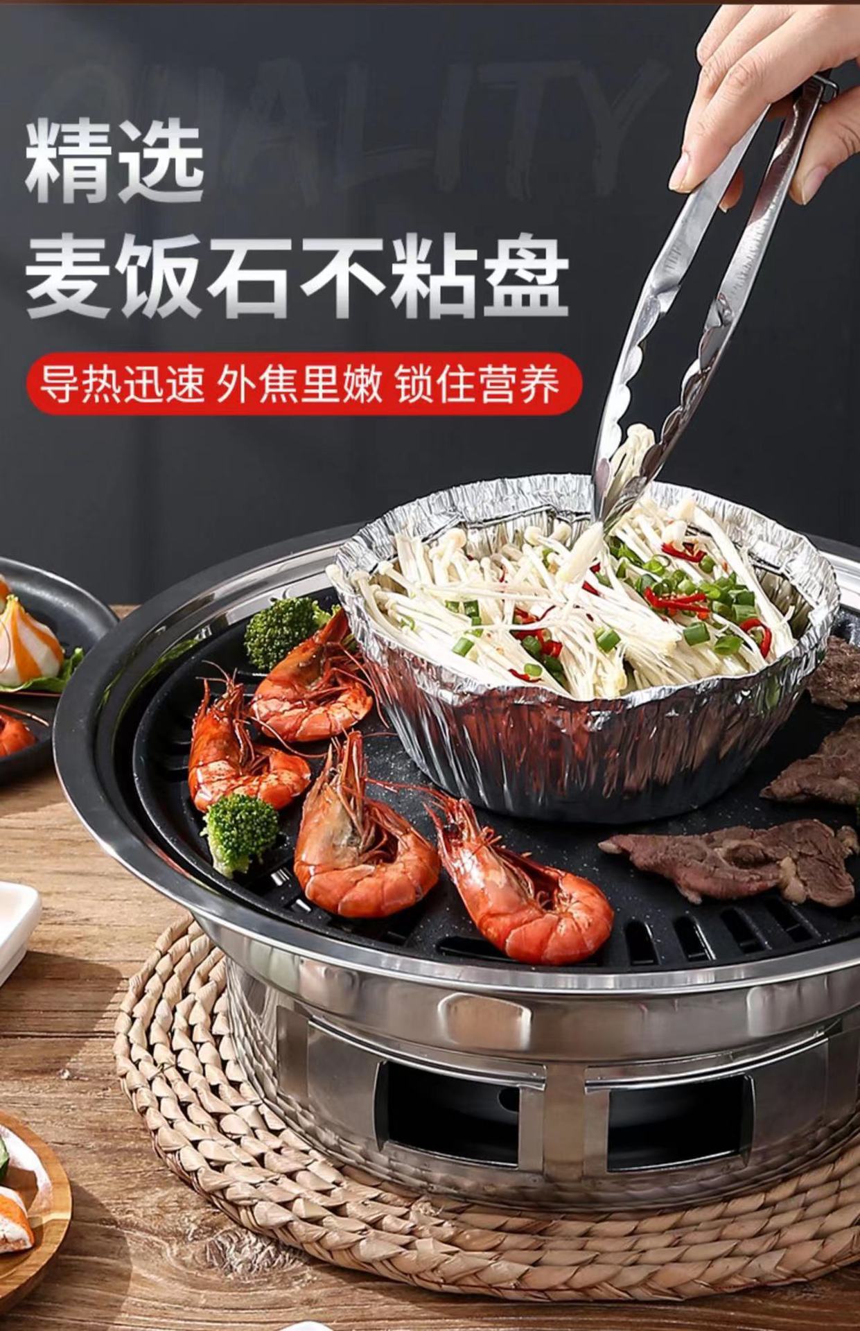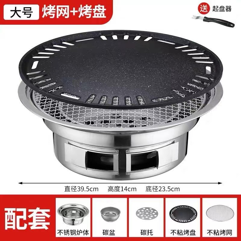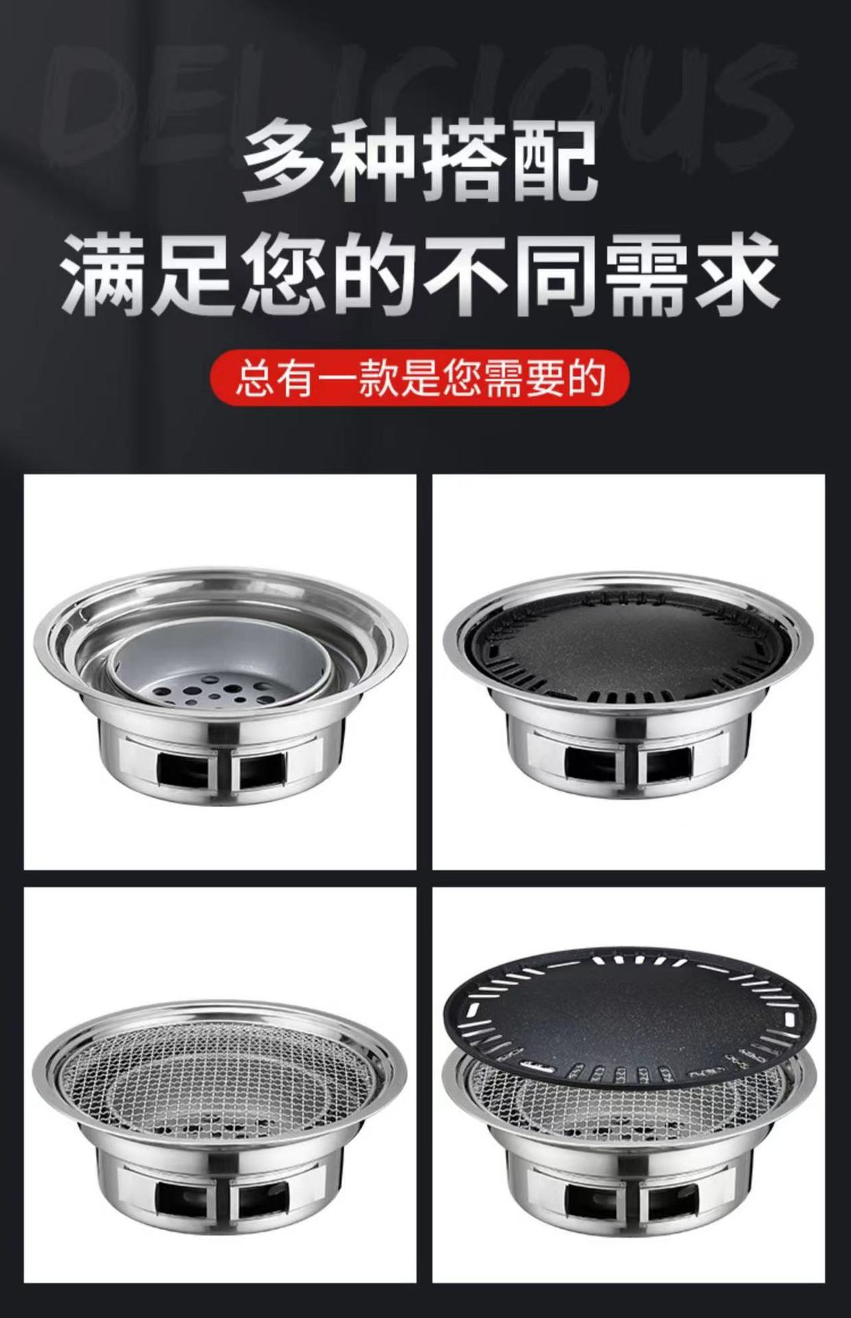 한국 숯불 바베큐 그릴 상업용 원형 스테인레스 스틸 바베큐 그릴 가정용 실내 소형 휴대용 야외 숯불 그릴스토어 가기