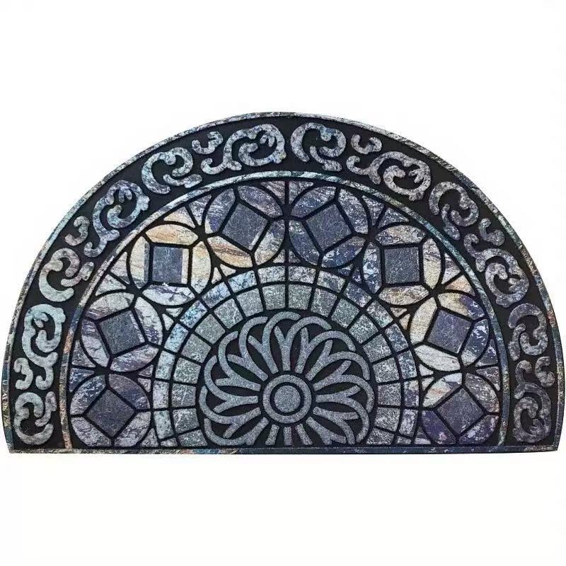 라벨링 TEMU 아메리칸 플로럴 반원형 바닥 매트, 현관용, 얼룩 방지 및 관리 용이, 욕실용 흡수성 바닥 매트