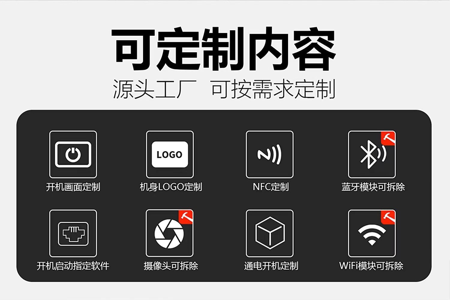 12. NFC:读取频率13.56MHZ, 支持ISO14443A/B,ISO15693等,选配;