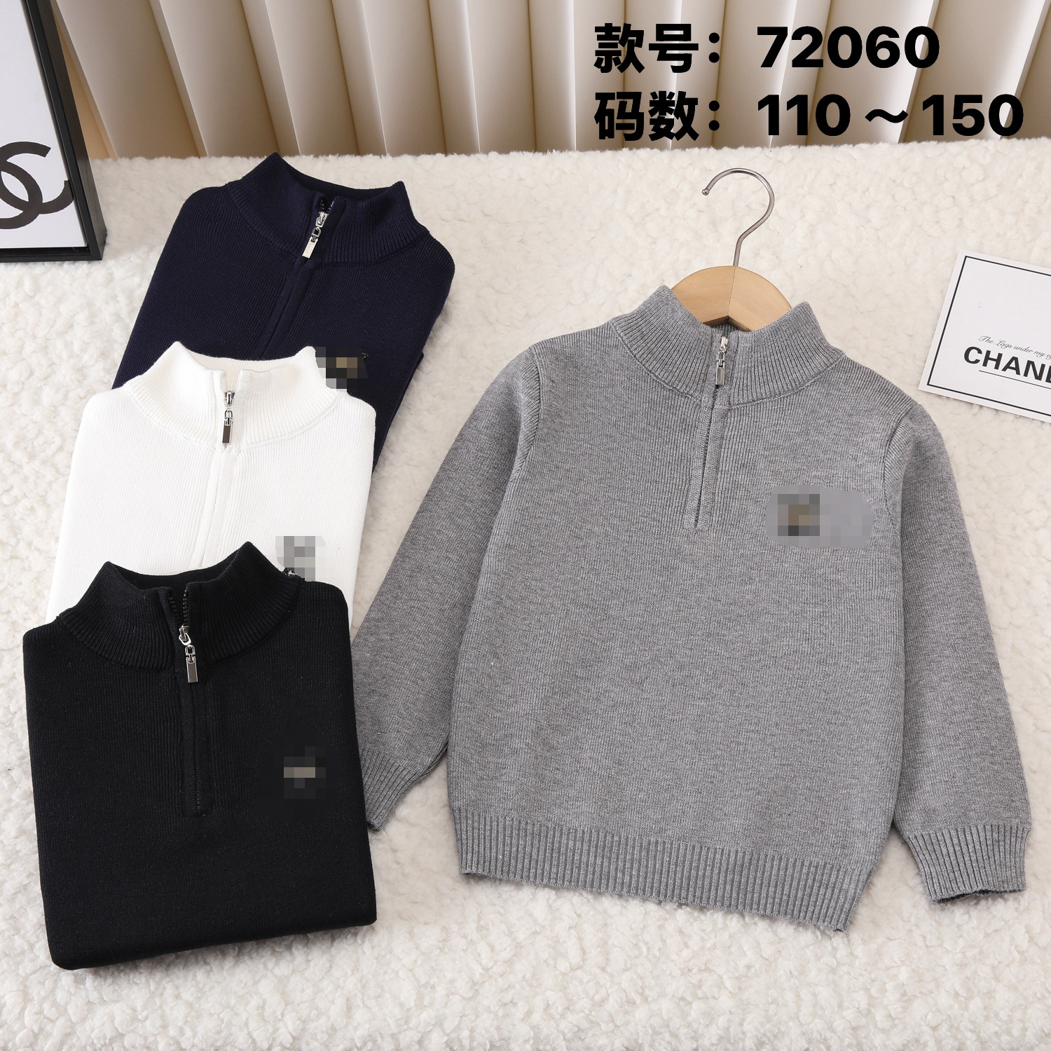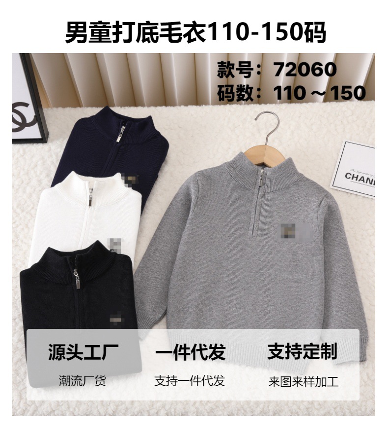 2025 어린이 캐주얼 스웨터 겨울 소년 솔리드 컬러 자수 하프 터틀넥 스웨터 베이비 지퍼 울 풀오버