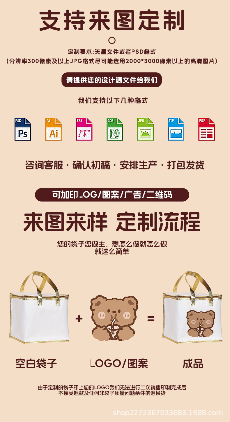 두꺼운 케이크 보온 가방 휴대용 테이크아웃 냉장 가방 방수 즉시 사용 가능 바베큐 해산물 알루미늄 호일 대용량 보냉 가방스토어 가기