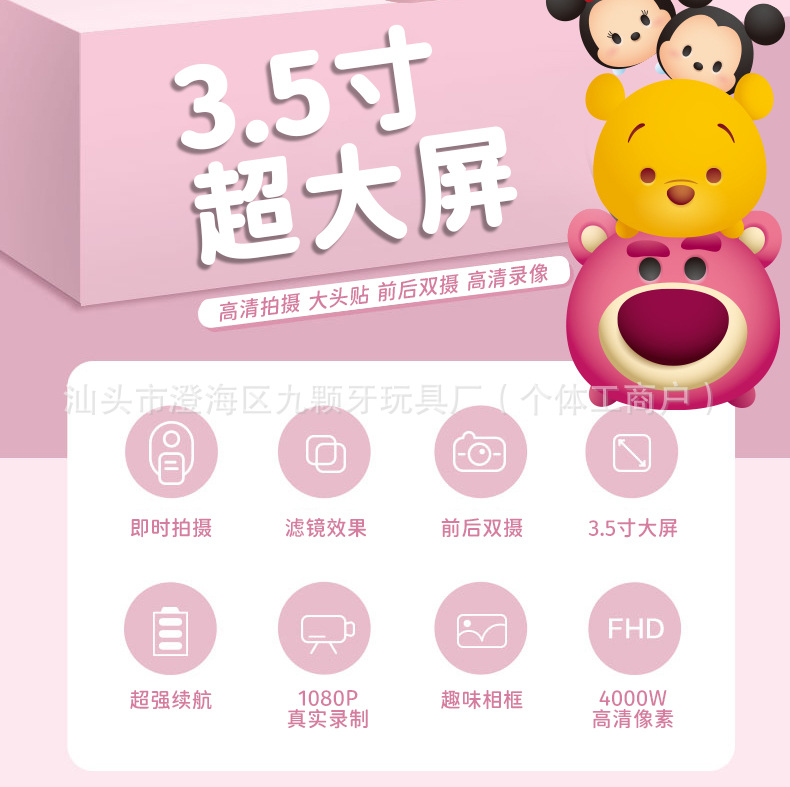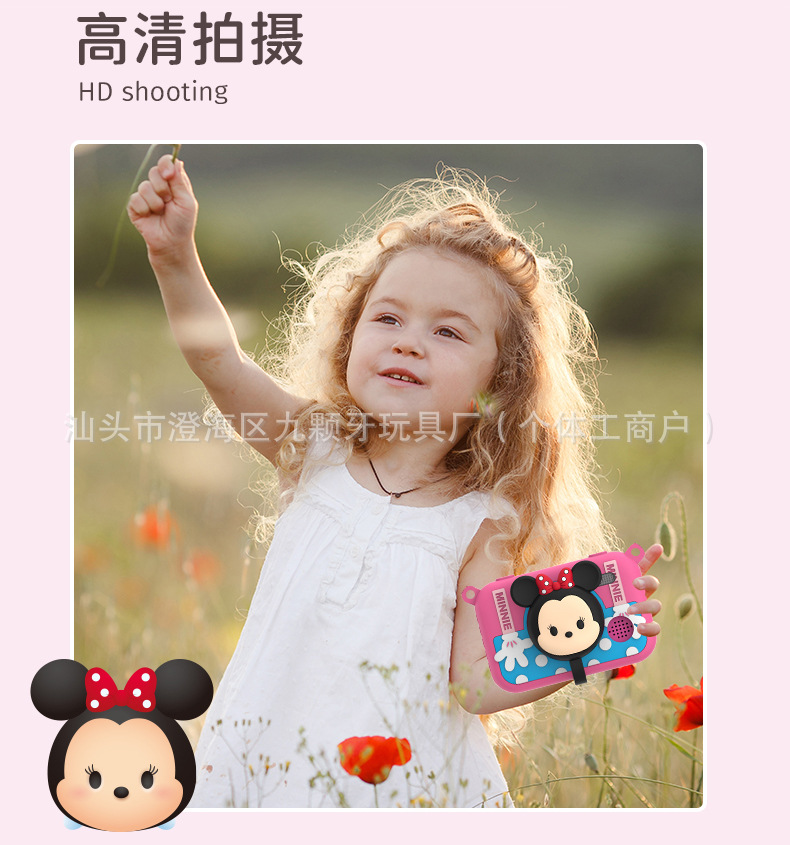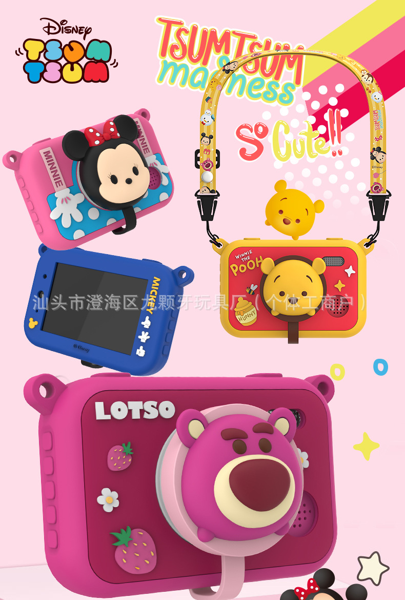 IP 공동 브랜드 어린이 사진 카메라 미키 딸기 곰돌이 푸우 HD 픽셀 디지털 사진 촬영 가능한 만화 소형 카메라스토어 가기