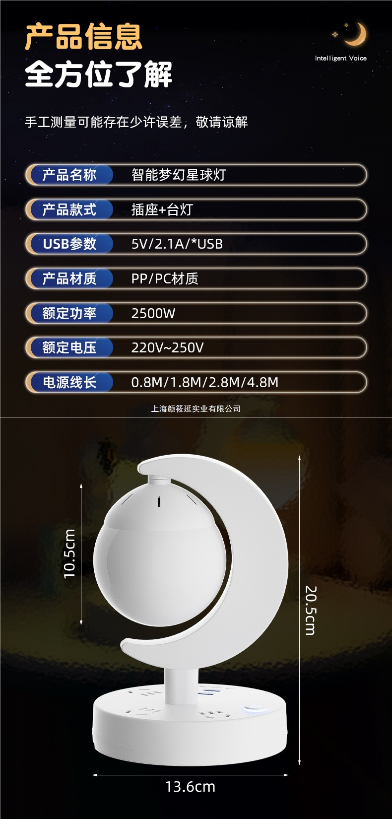 • 플래닛 램프 [3색 조명 + 음성 제어 + 리모콘] 전장 0.8m