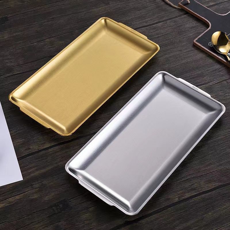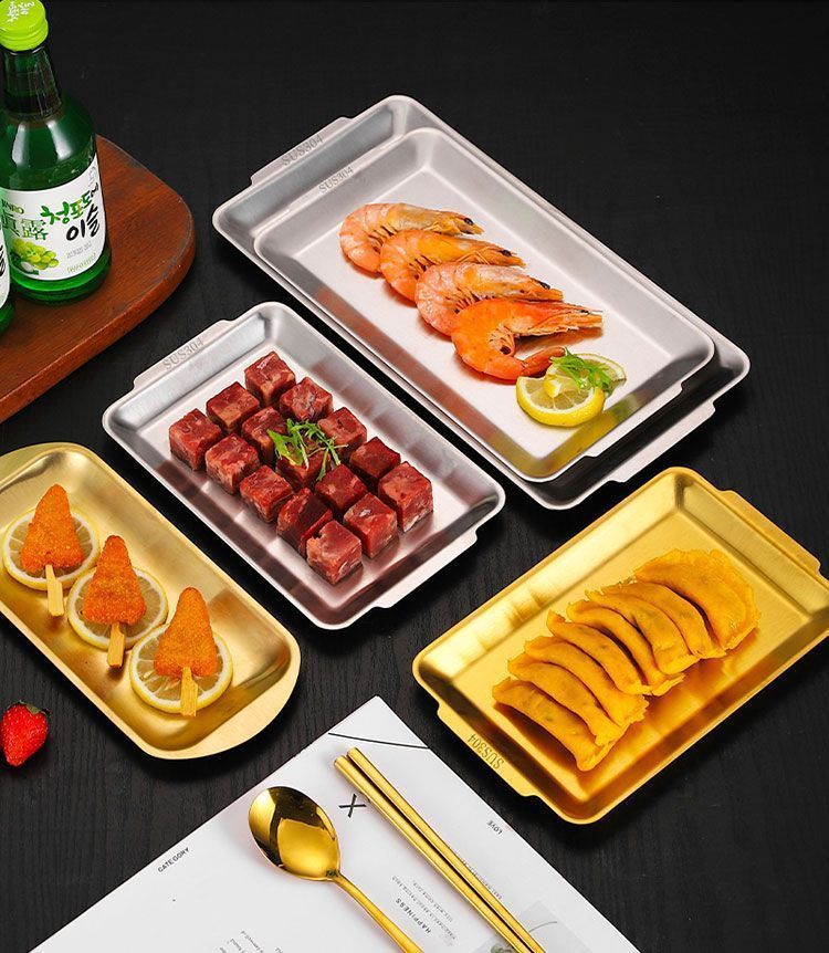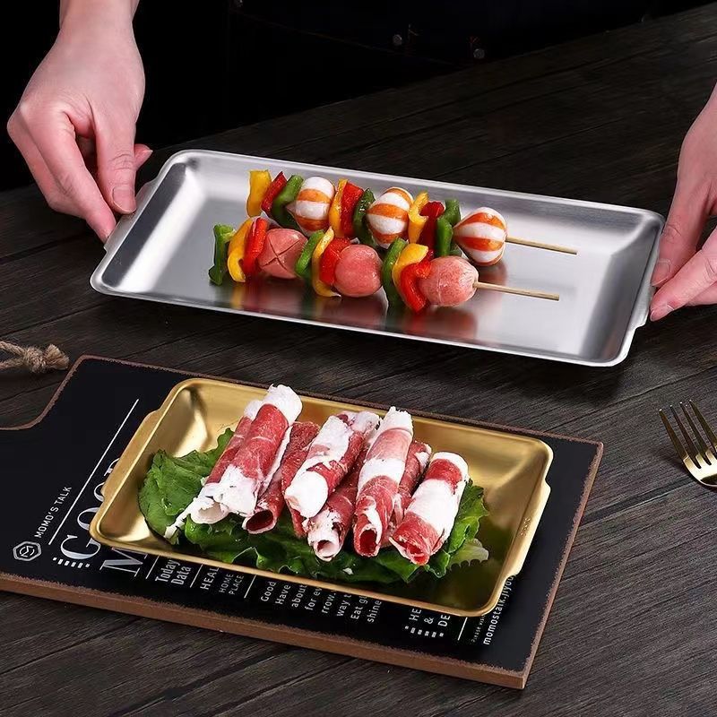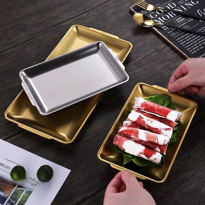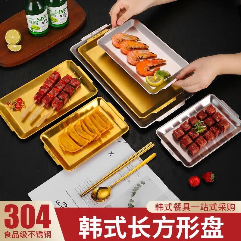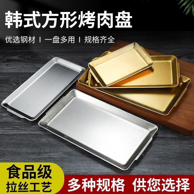 304 스테인레스 스틸 한국식 바베큐 접시 두꺼운 사각형 다목적 접시 황금 사각형 트레이 상업용 바베큐 꽈배기 접시