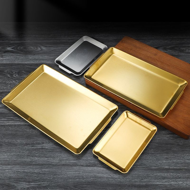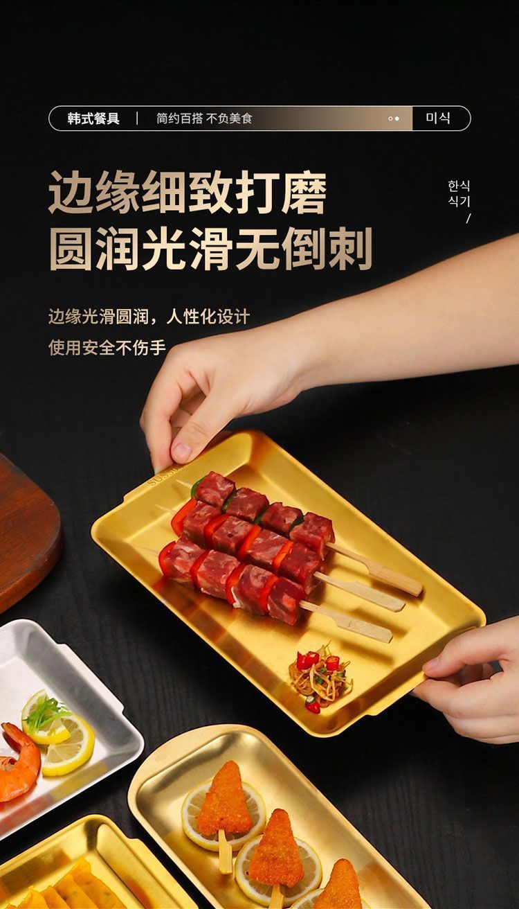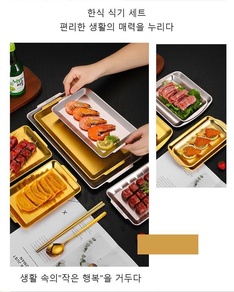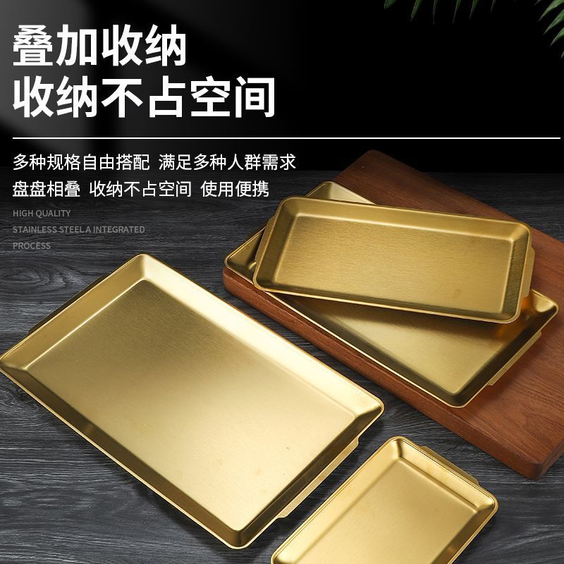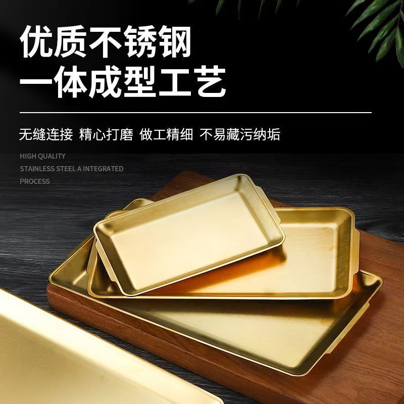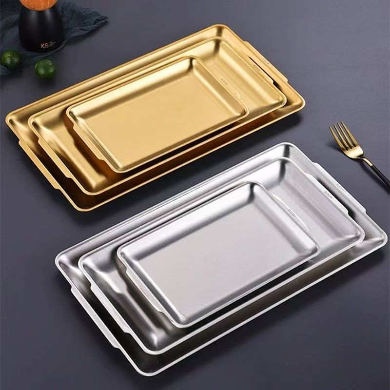 304 스테인레스 스틸 한국식 바베큐 접시 두꺼운 사각형 다목적 접시 황금 사각형 트레이 상업용 바베큐 꽈배기 접시