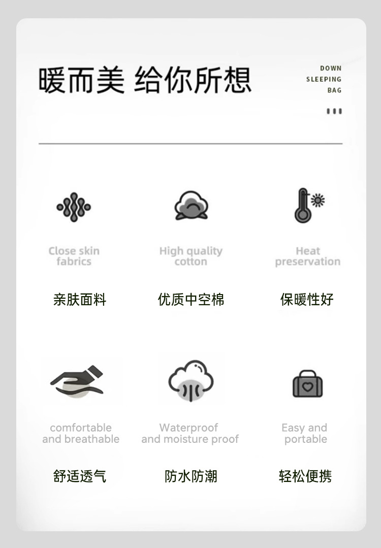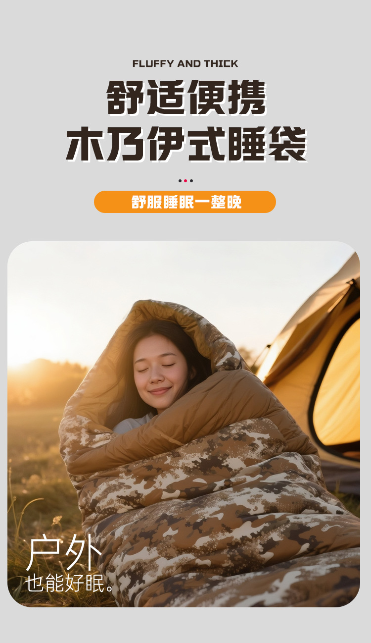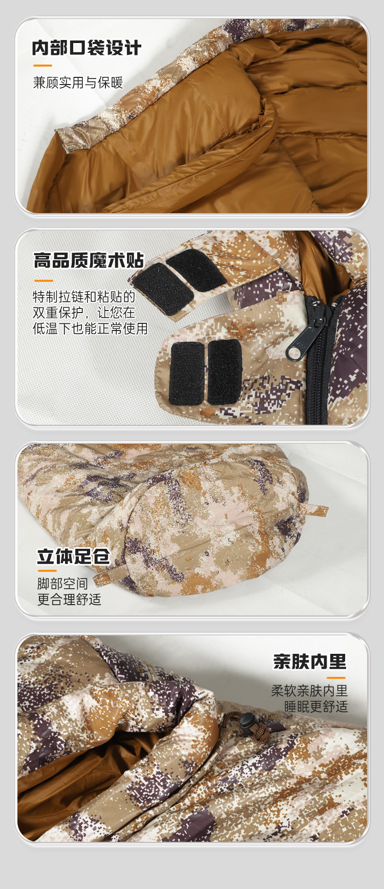 모자가 달린 야외 캠핑 침낭, 다운 침낭, 사계절 휴대용 두꺼운 성인 엄마 스타일, 확대된 위장 침낭