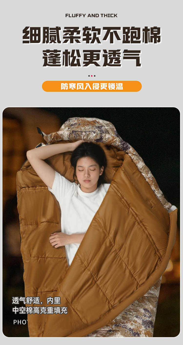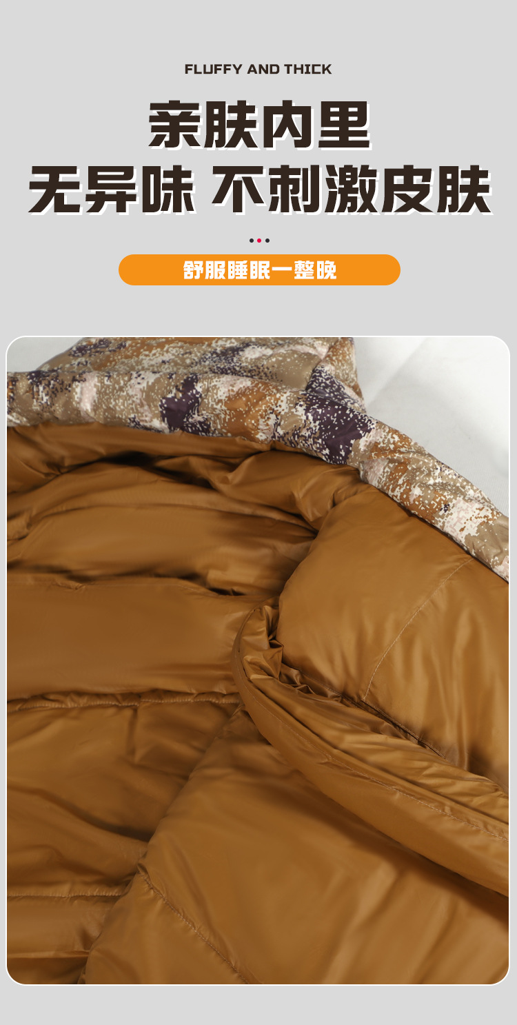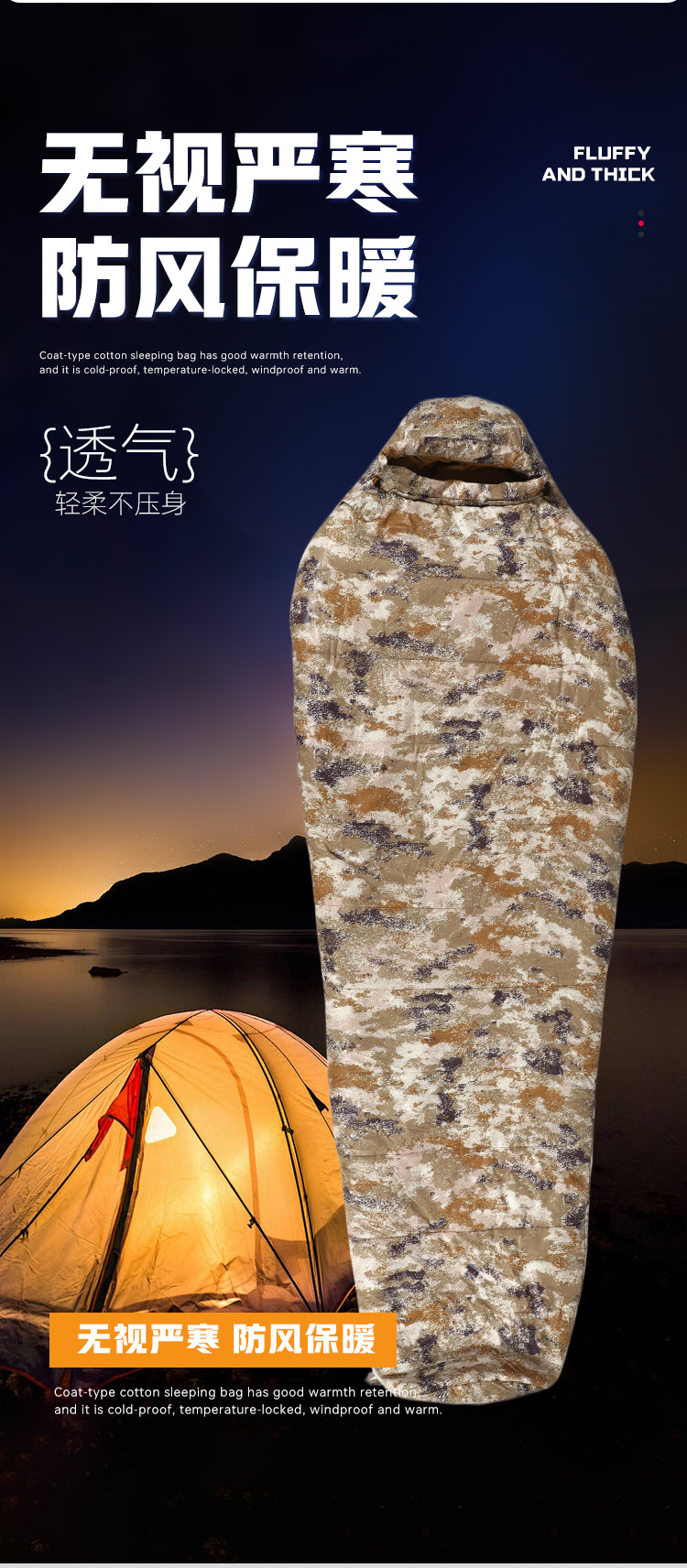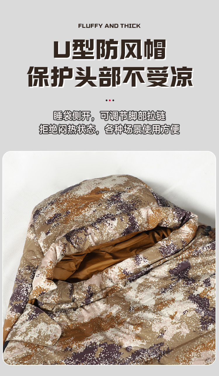 모자가 달린 야외 캠핑 침낭, 다운 침낭, 사계절 휴대용 두꺼운 성인 엄마 스타일, 확대된 위장 침낭스토어 가기