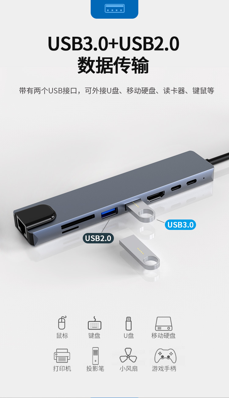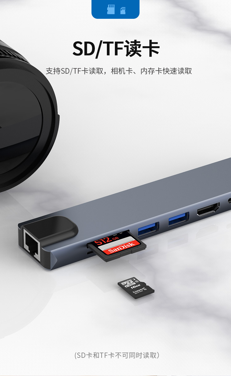 TYPE-C 8-in-1 확장 도크-HDMI 변환기 USB 다기능 고속 전송 분배기 허브스토어 가기